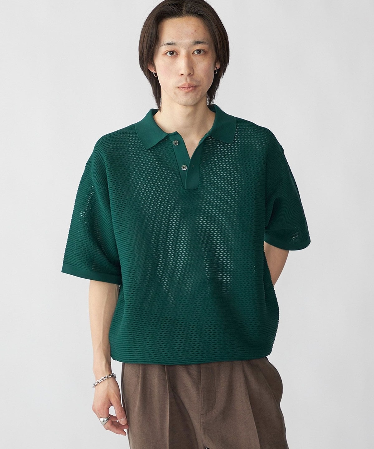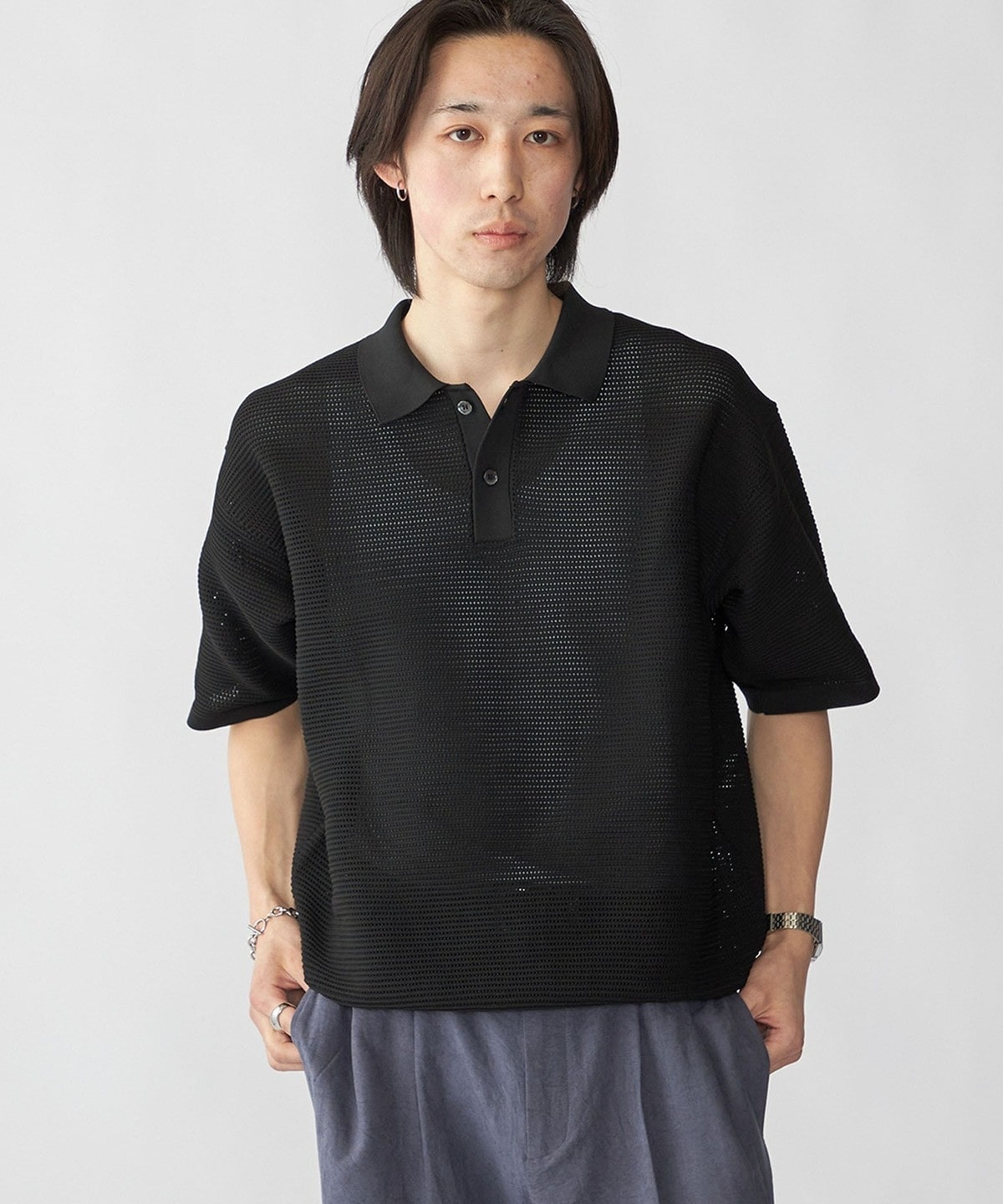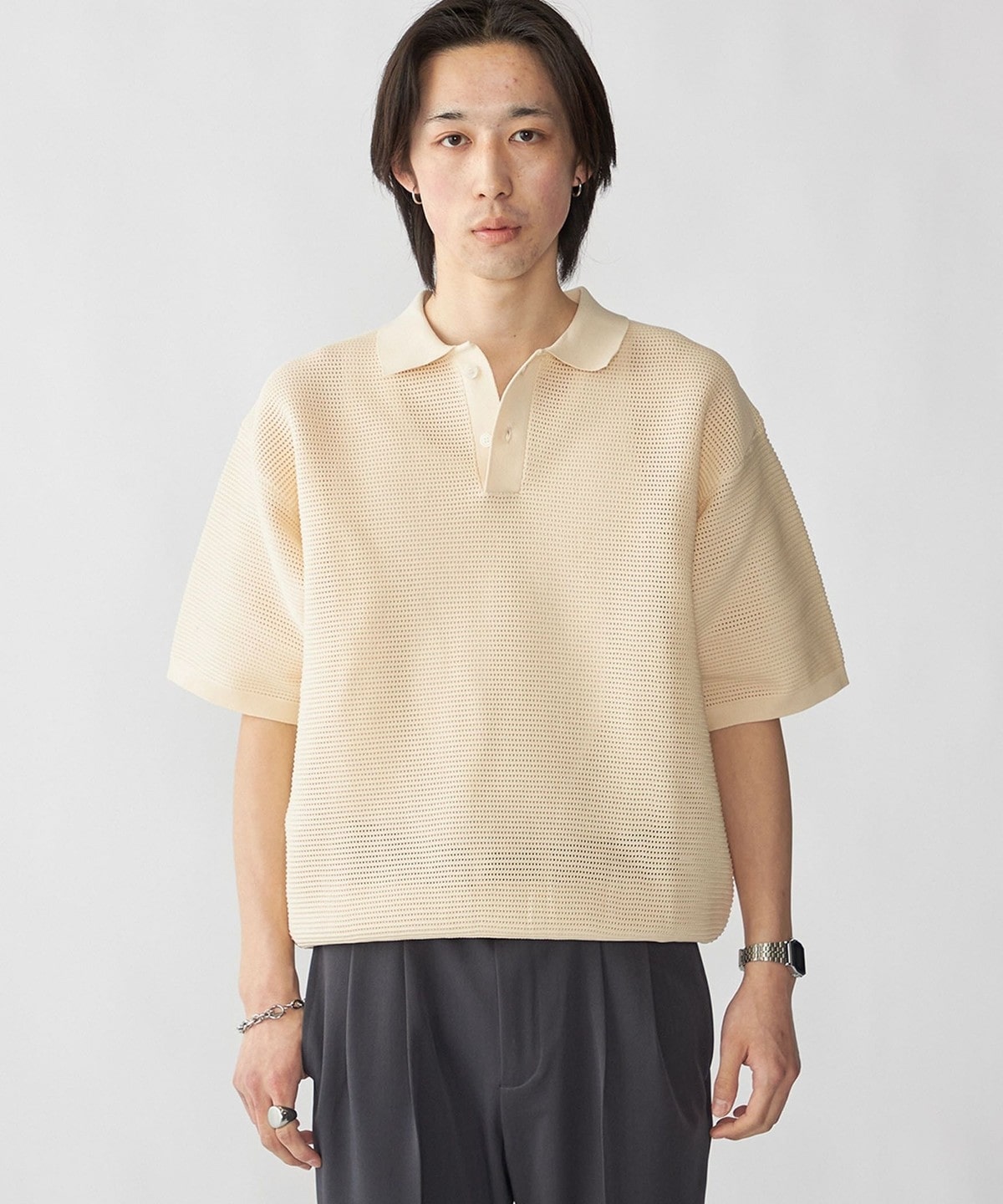 毎シーズン人気なポリエステル糸を使用した、軽くてソフトなニットポロプルオーバー。