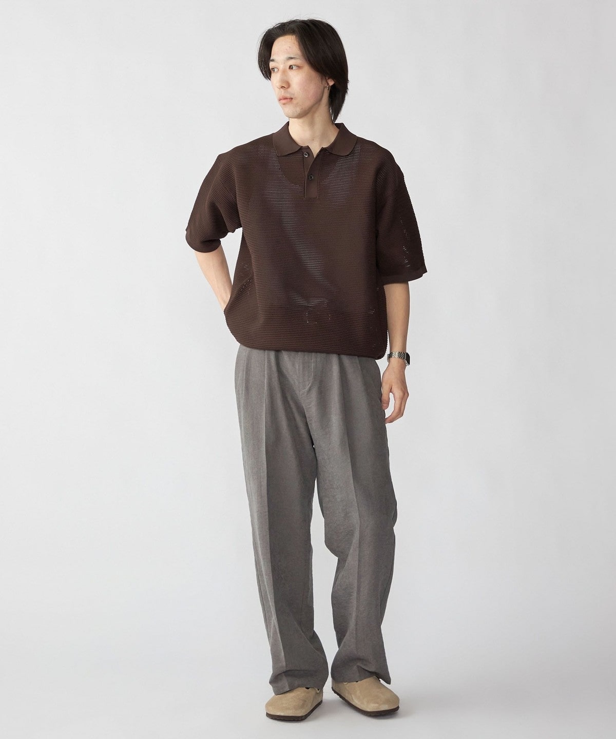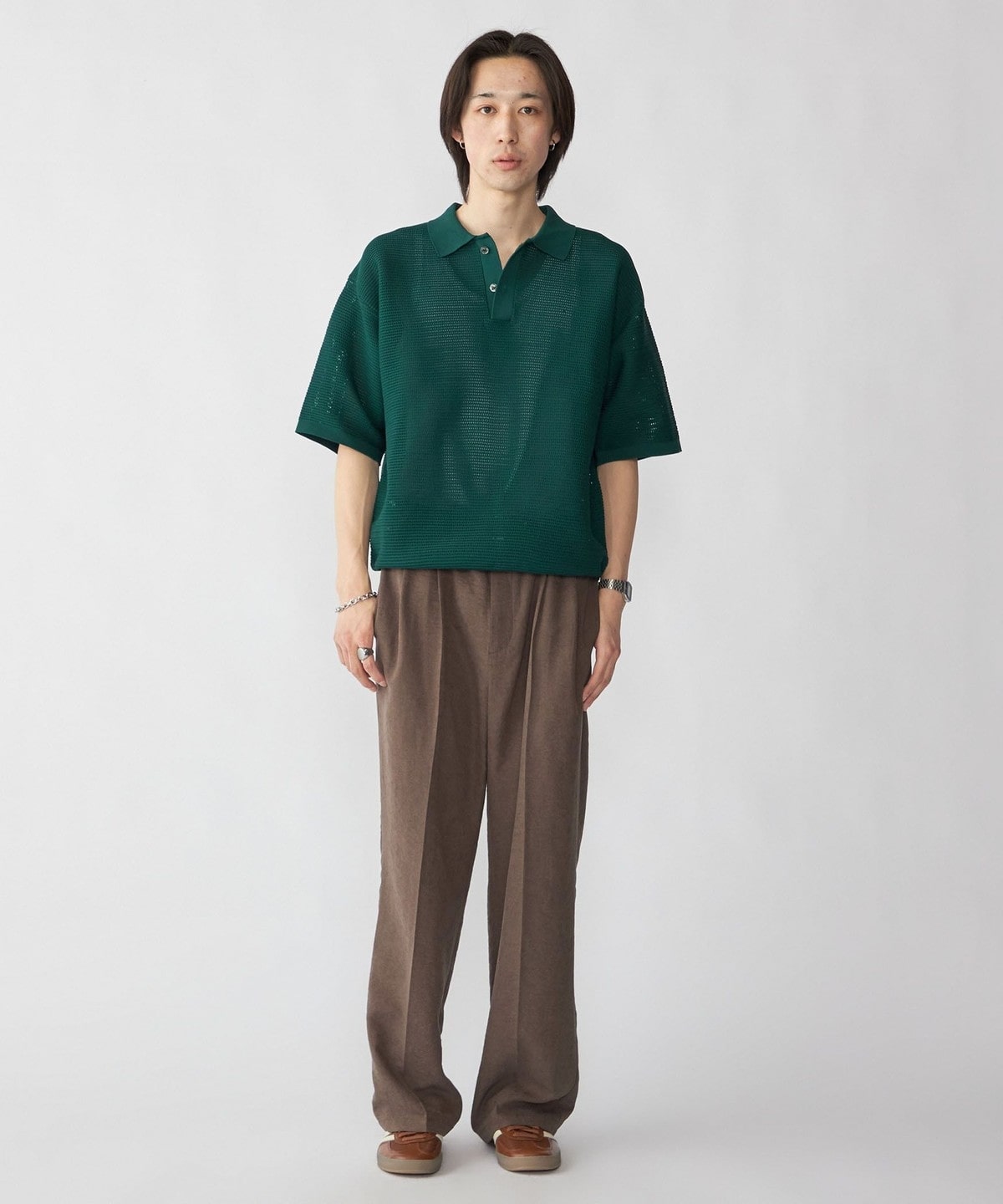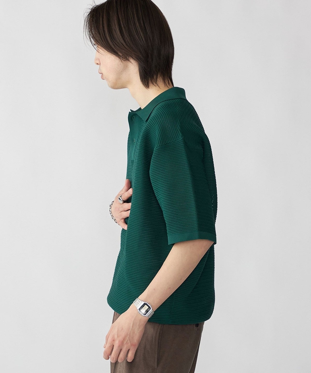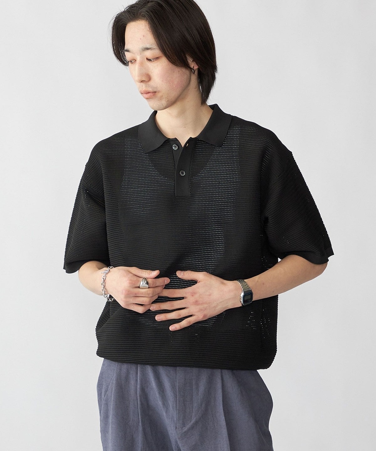 毎シーズン人気なポリエステル糸を使用した、軽くてソフトなニットポロプルオーバー。