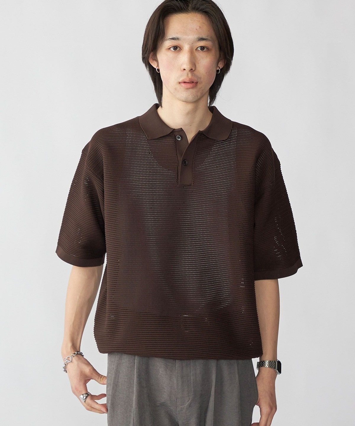 City Ambient Products: ポリエステル メッシュ ニット ショートスリーブ ポロ