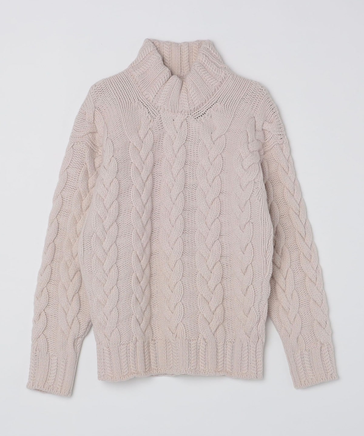 【SHIPS別注】GRAY: ケーブル編み タートルネック ニット