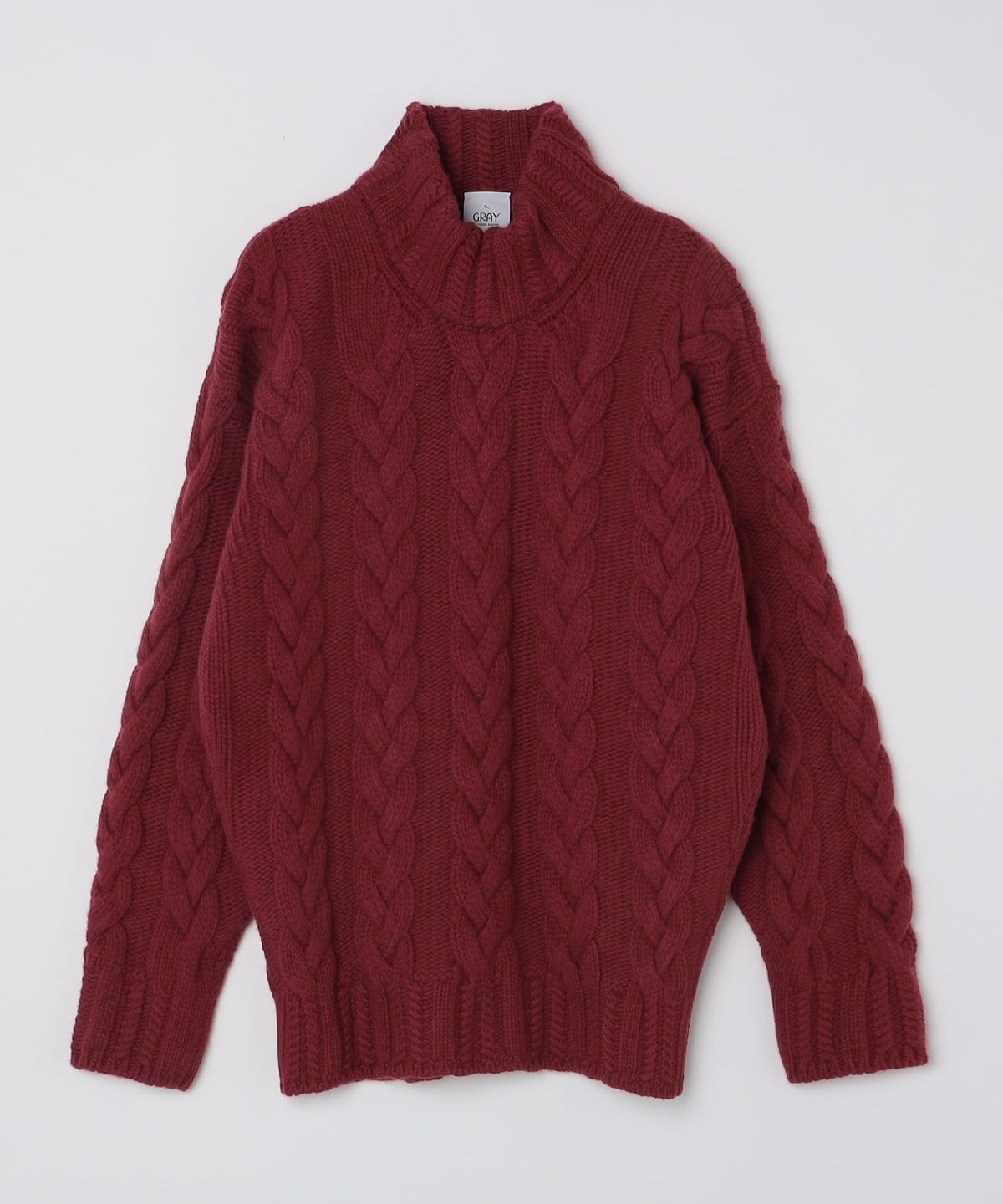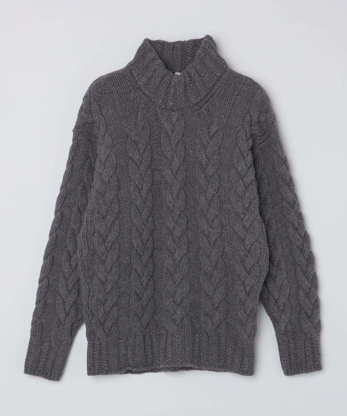 GRAY ケーブル編み タートルネック ニット【素材特性】上質なウール100%の糸で編み上げられいます。