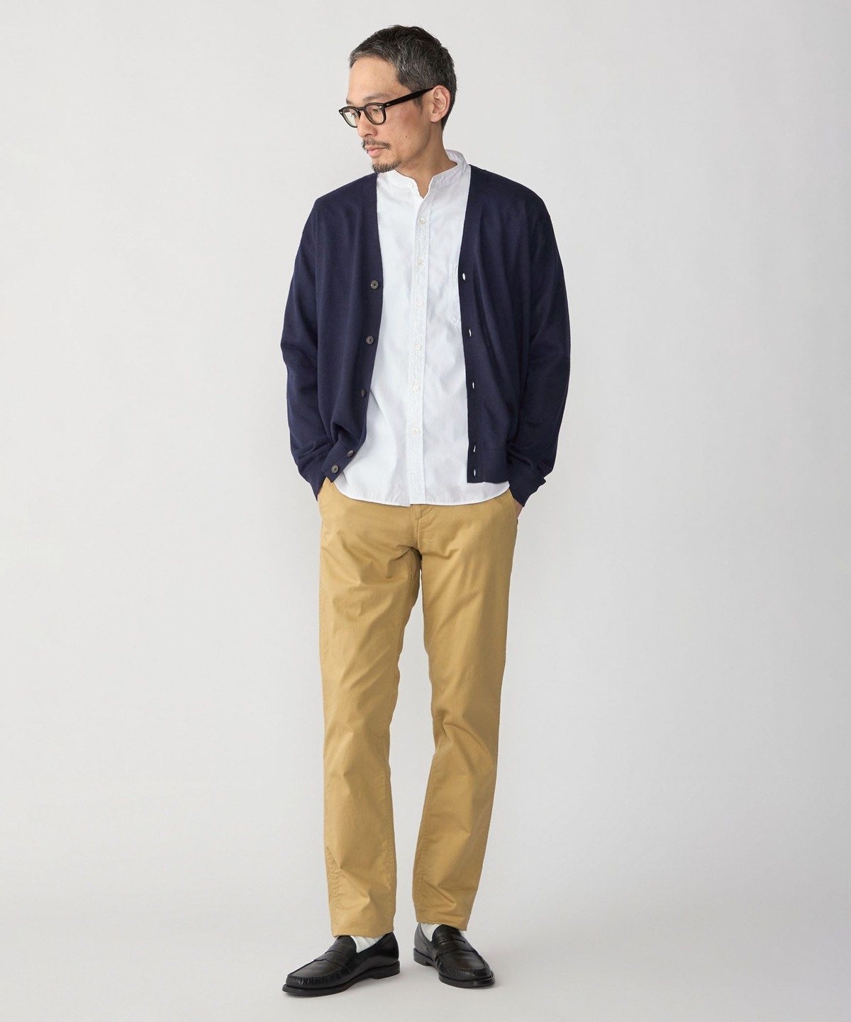 パンツはややリラックスしたシルエットからテーパードシルエットまで幅広くコーディネートが可能。