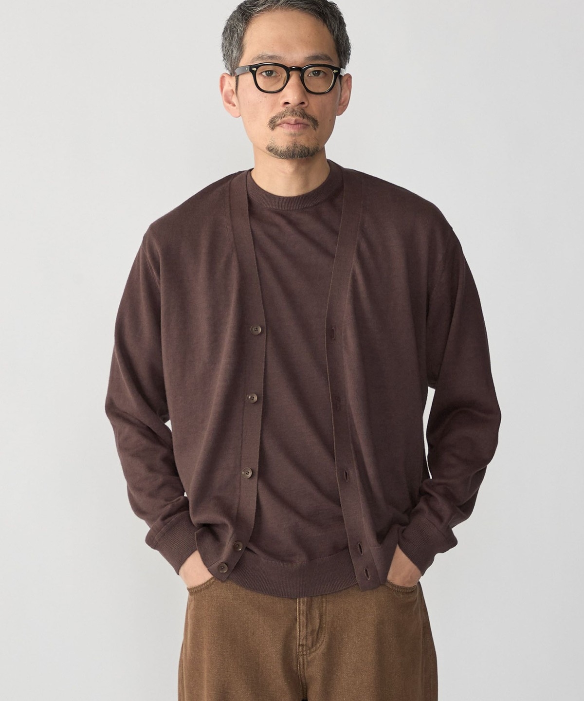 2. SHIPS:〈接触冷感/ 手洗い可能〉ラミー Vネック カーディガン ブラウン