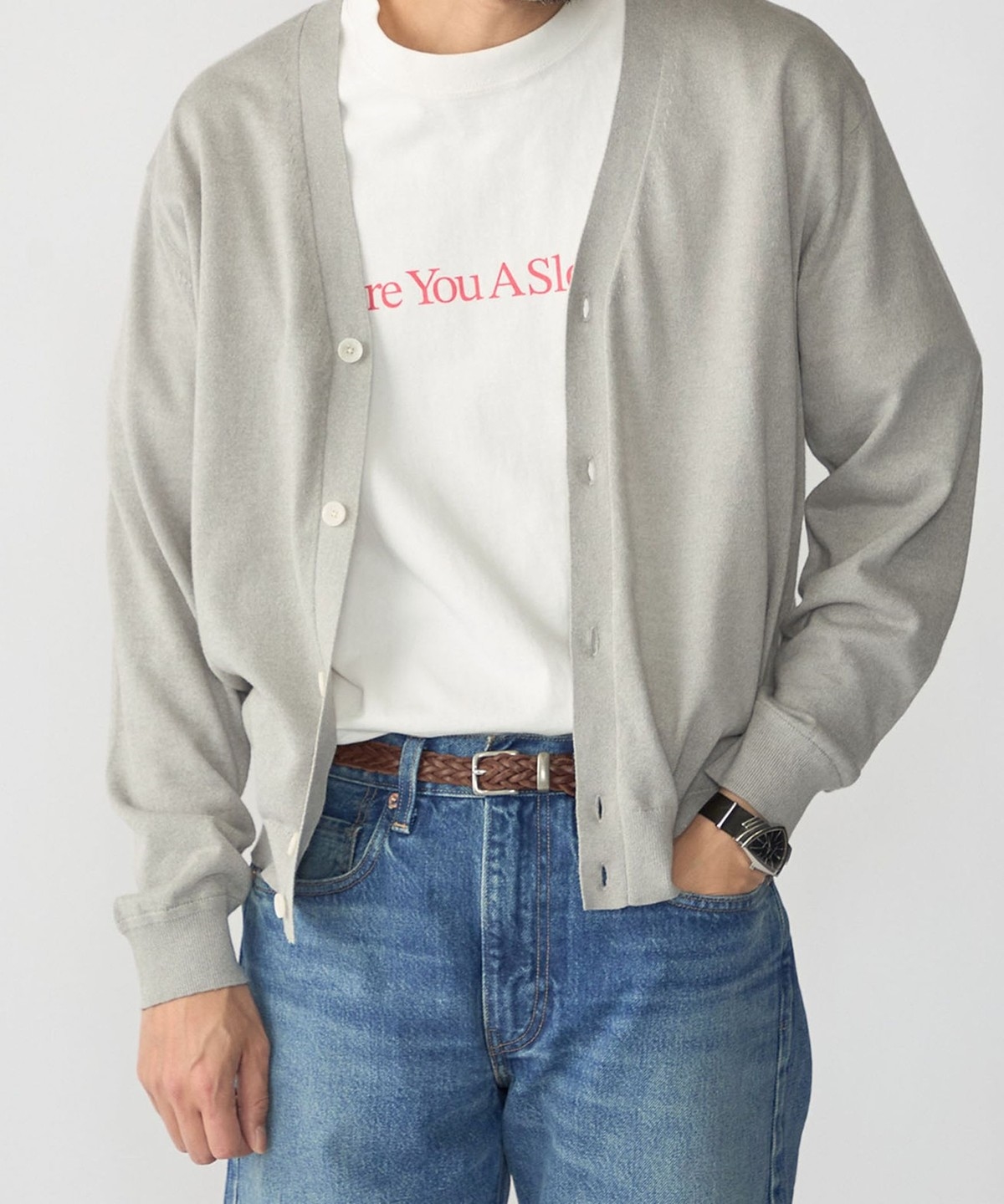 ラミー本来のナチュラルな光沢がより引き立つシンプルなVカーディガン。