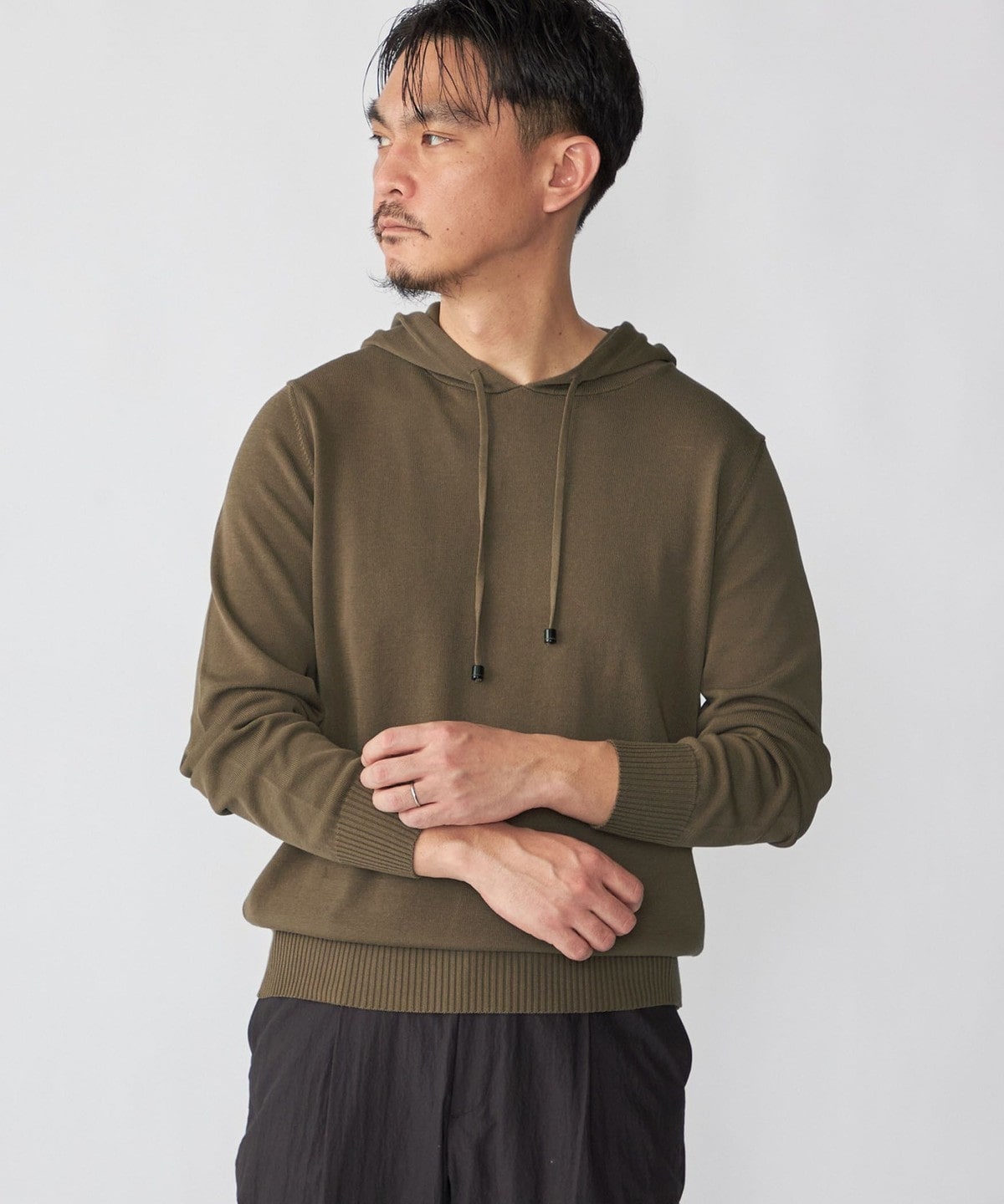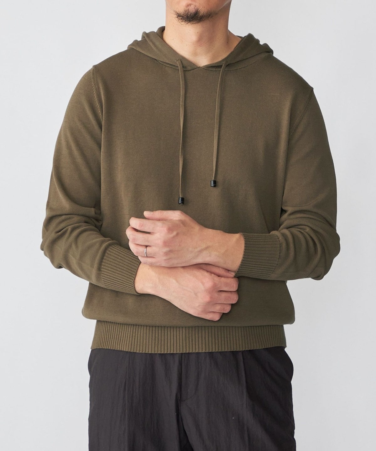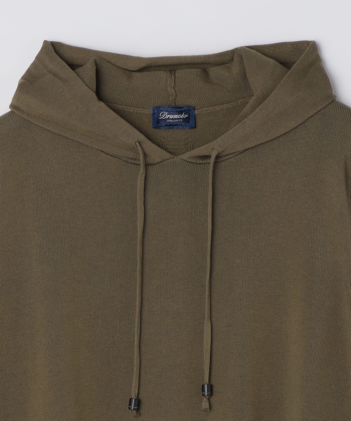 1. Drumohr: コットン ニット フーディ オリーブ
