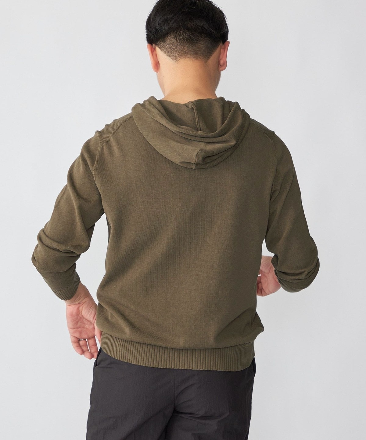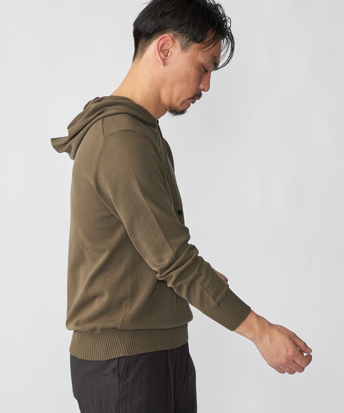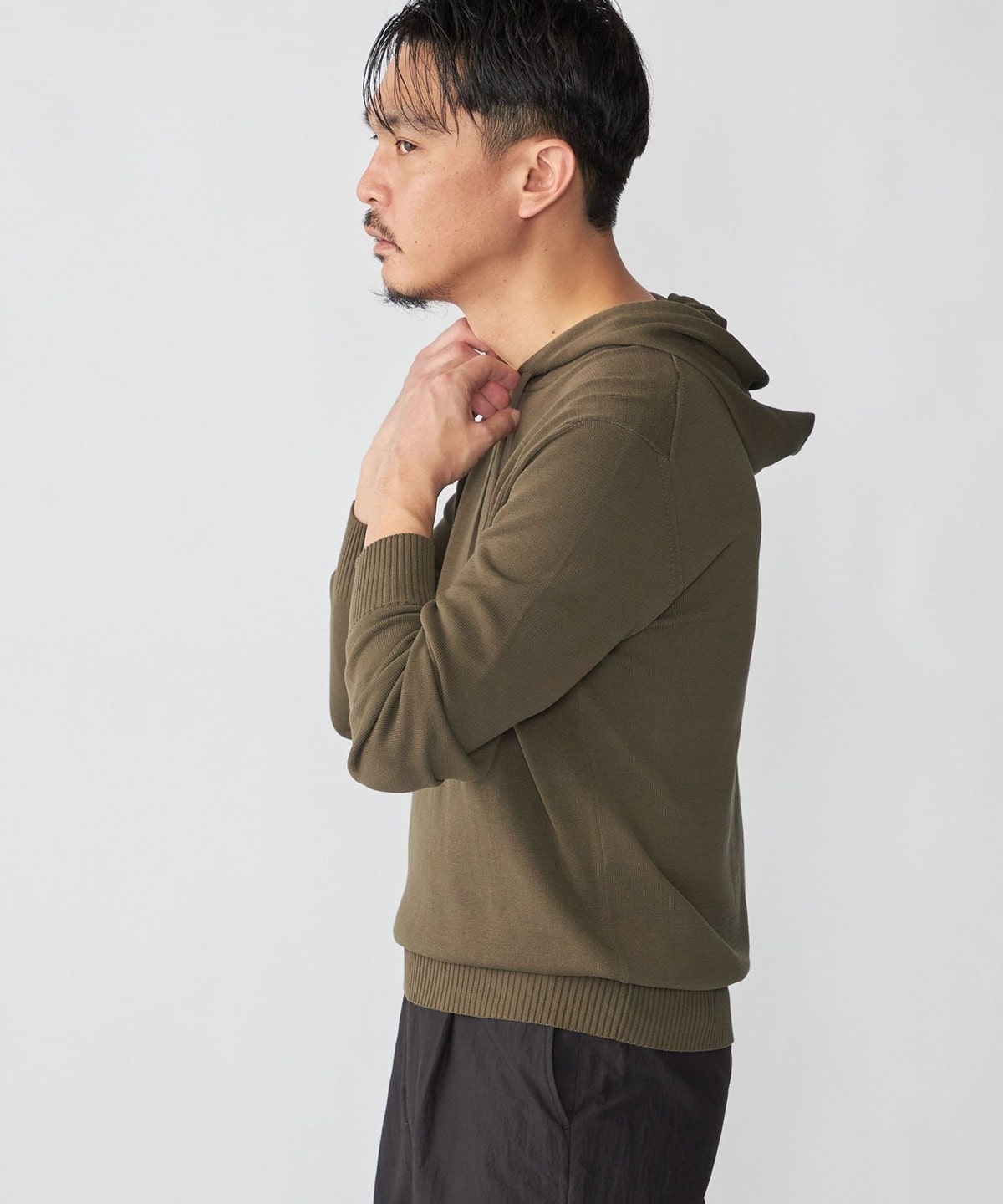 1. Drumohr: コットン ニット フーディ オリーブ