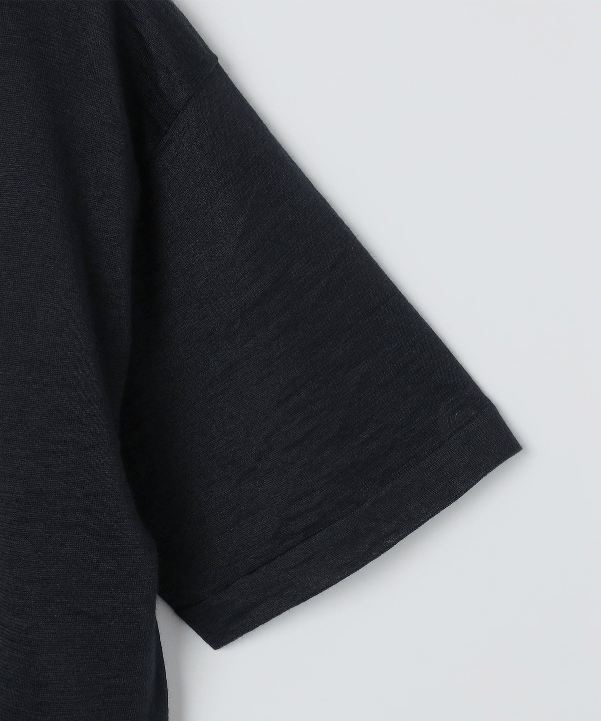 ハイゲージの編機でゆっくりと編み立てており、ラミー特有のハリコシと透け感、凹凸やシボ感が感じら表情豊かな仕上がりに。