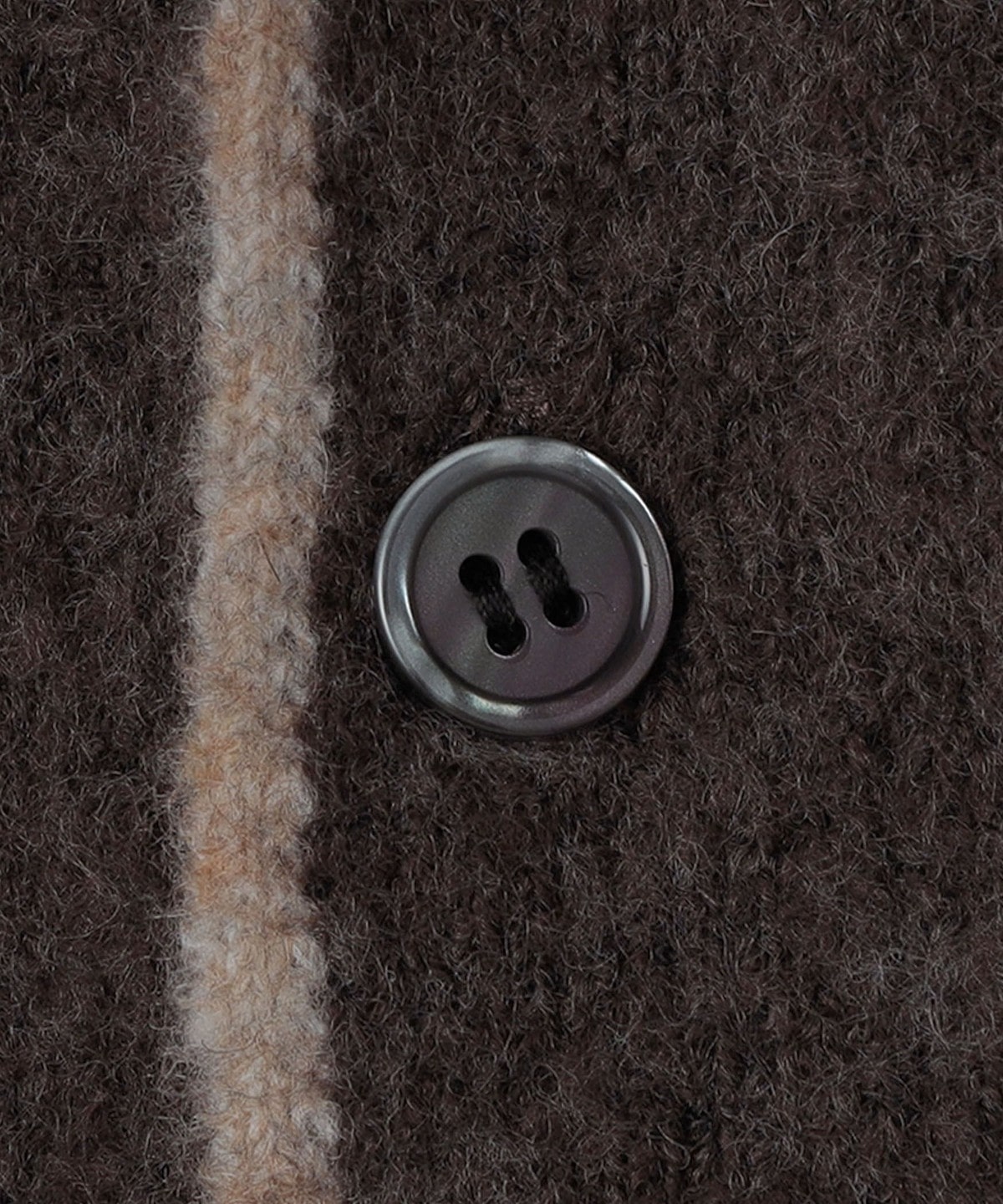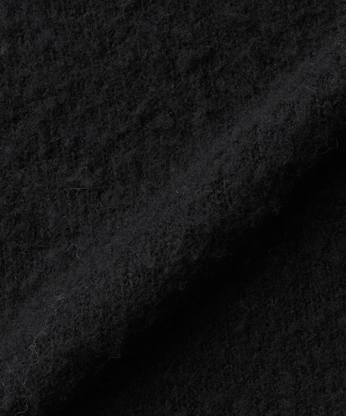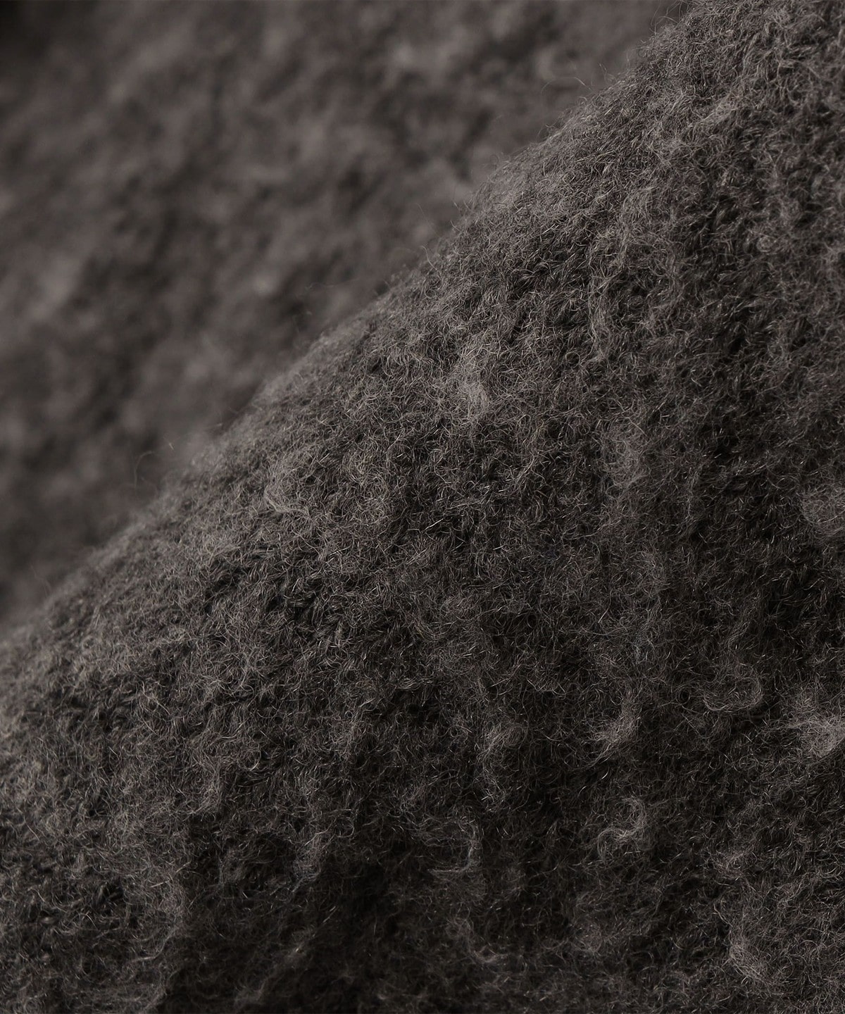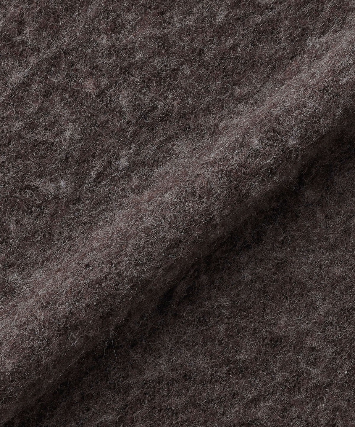 1枚でサマになる様に襟元を微配色にして最後に起毛加工を施しました。