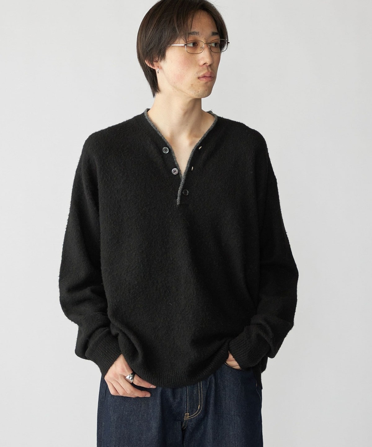 2. City Ambient Products: シャギー ヘンリー ネック ニット ブラック
