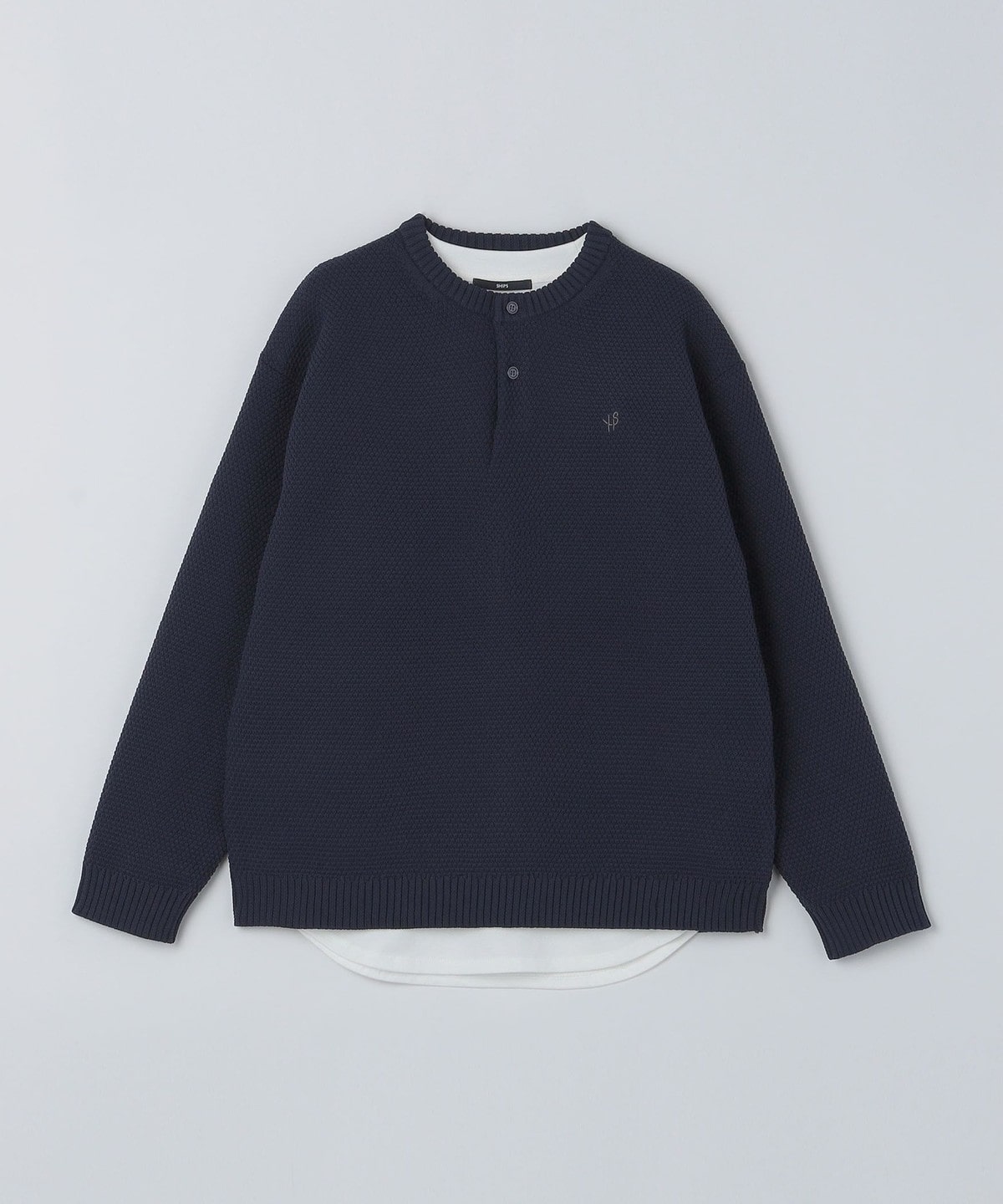 3. 【WEB限定】SHIPS: ヘンリーネック レイヤード ニット ネイビー