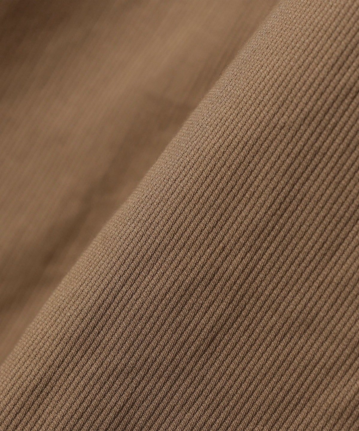 コンパクト糸を使い細ピッチのピケ組織を高密度で織り上げ、ドライタッチでハリとコシのある風合いを表現。