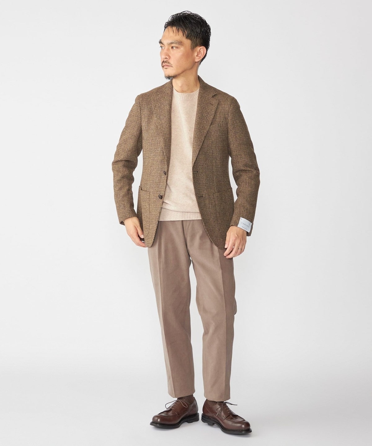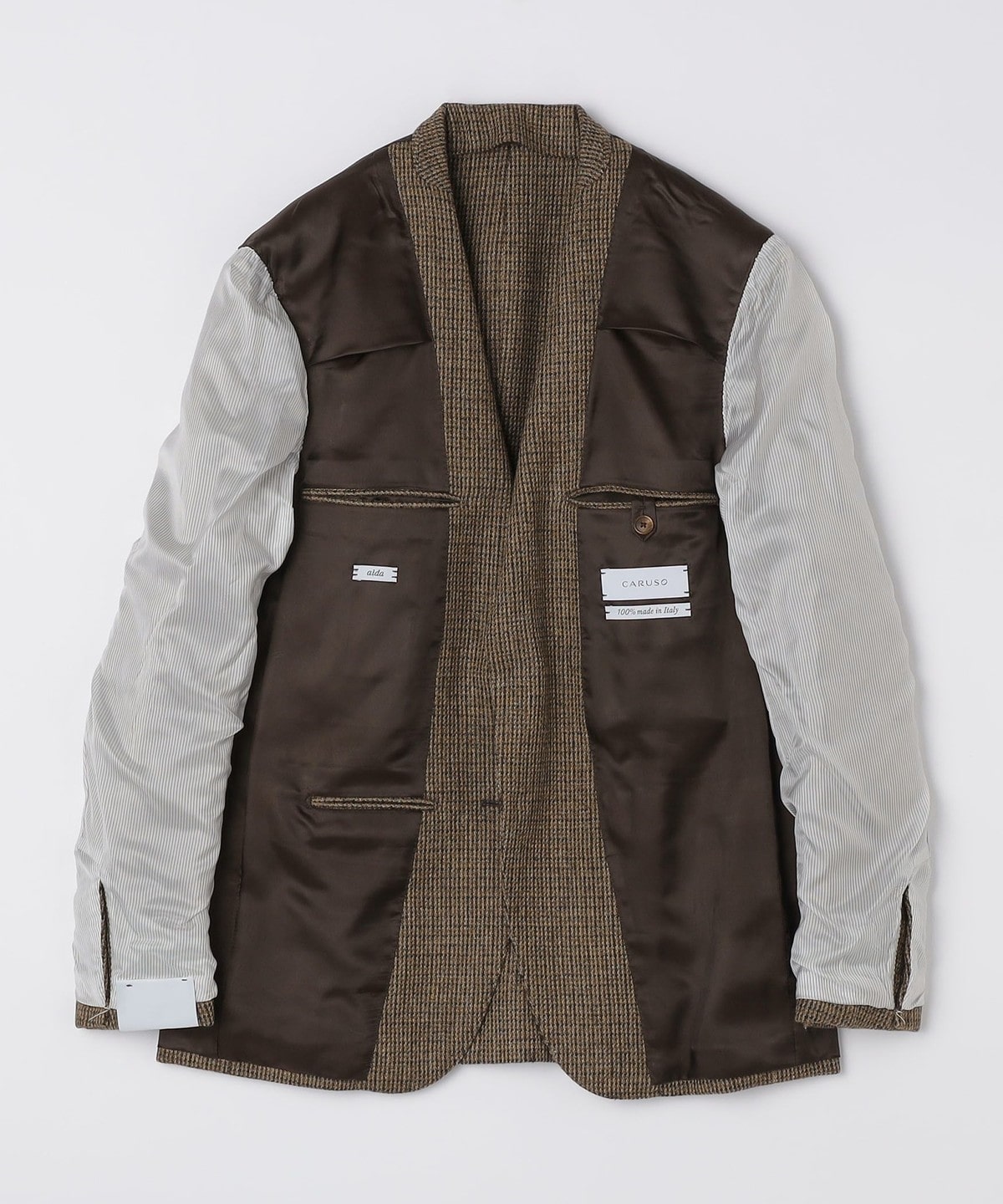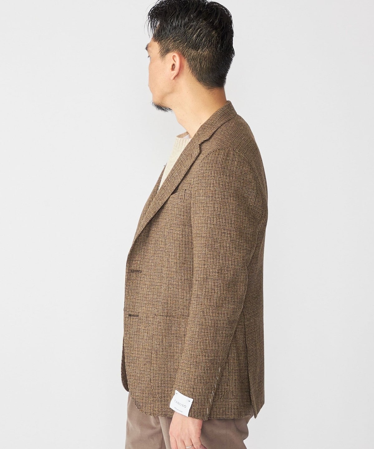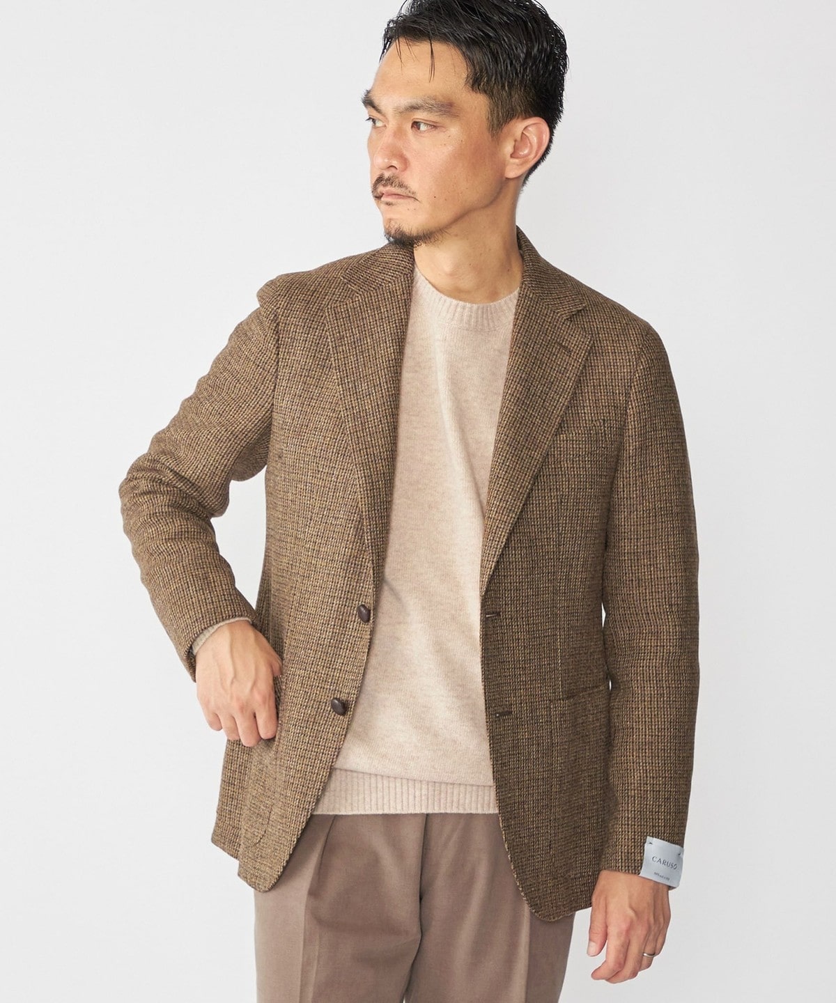 CARUSOの定番モデル"aida"にクラシックなムードが漂うツイード素材を採用したジャケットです。