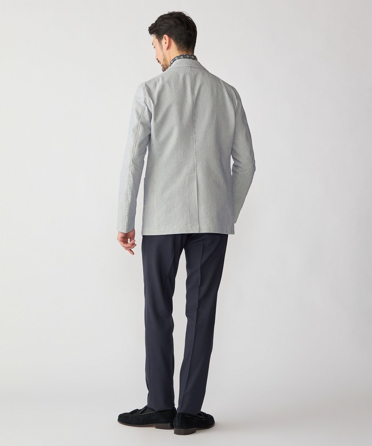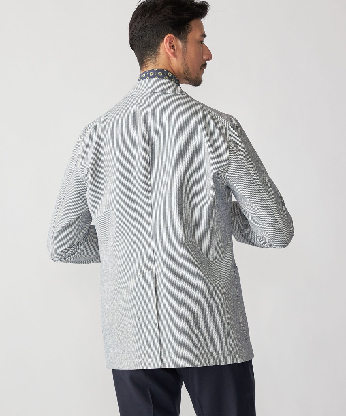 シアサッカーは生地表面の凹凸感が特徴で、肌離れがよく夏でも快適に着用いただけます。