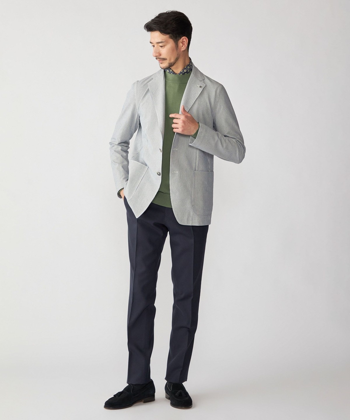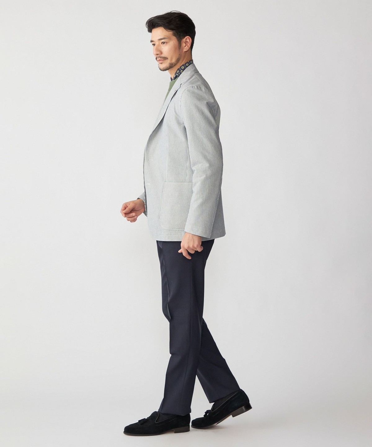 ドレスシャツやネクタイを使用すれば硬派なスタイリングもお楽しみいただけます。