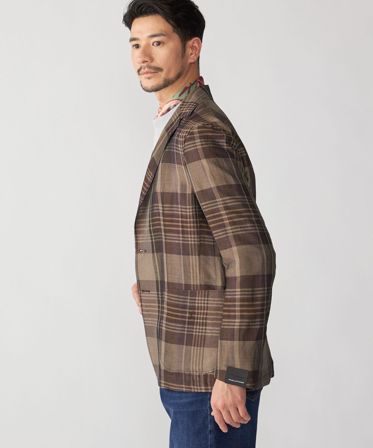 TAGLIATORE: レーヨン リネン チェック ライト ジャケット