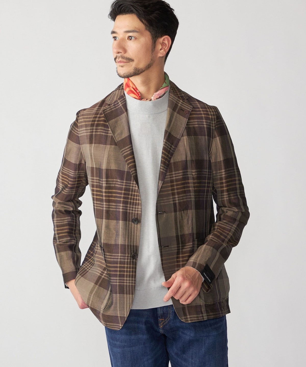TAGLIATORE レーヨン リネン チェック ライト ジャケット