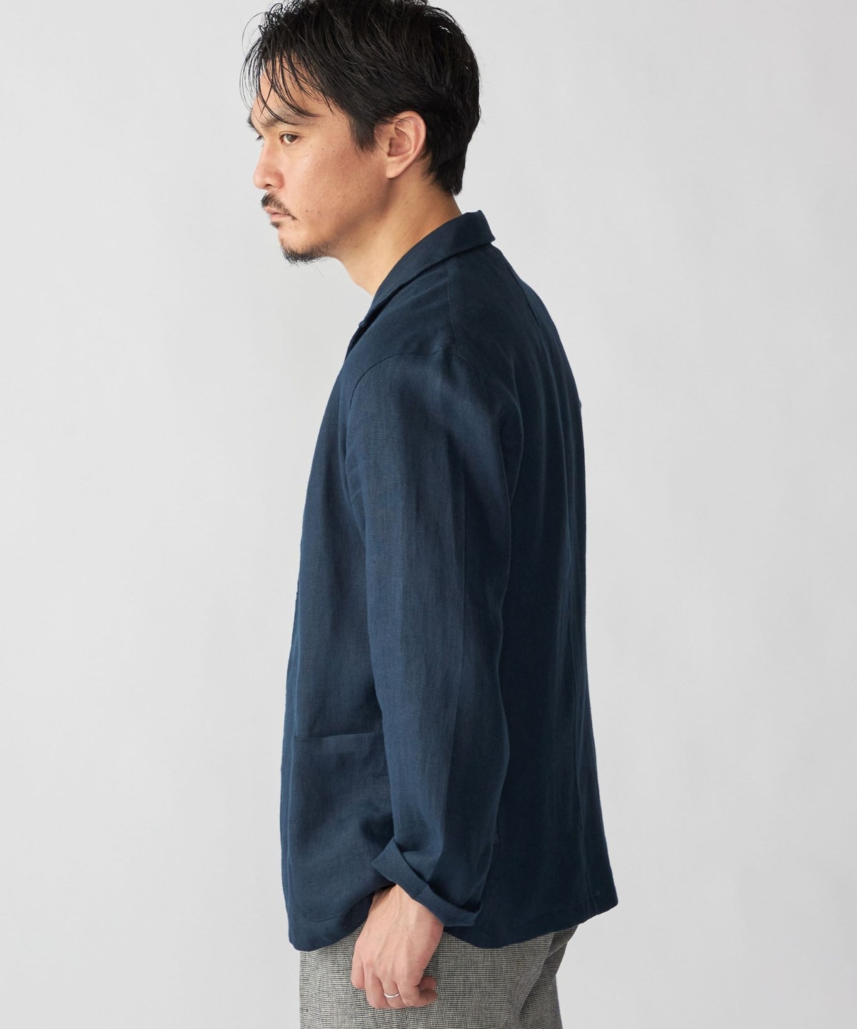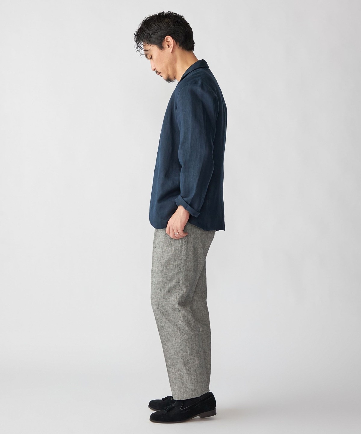 リネン100%の素材は吸水性や通気性に優れており真夏でも快適に着用いただけます。