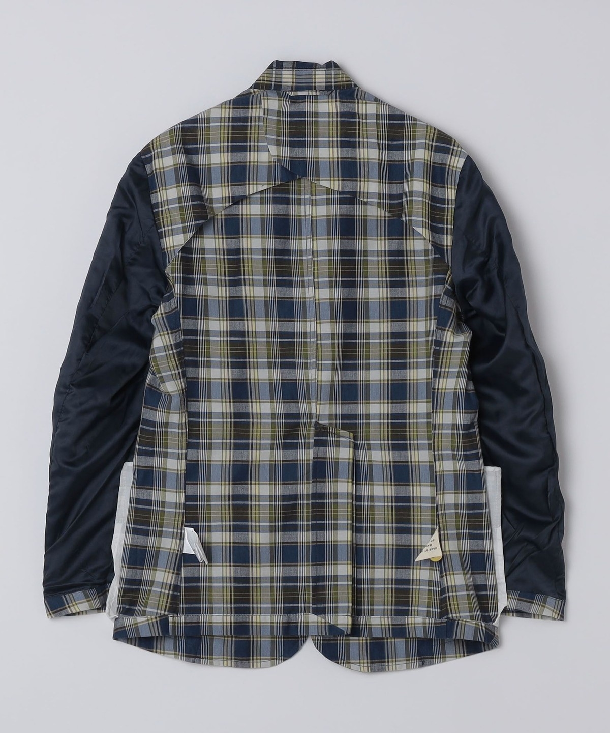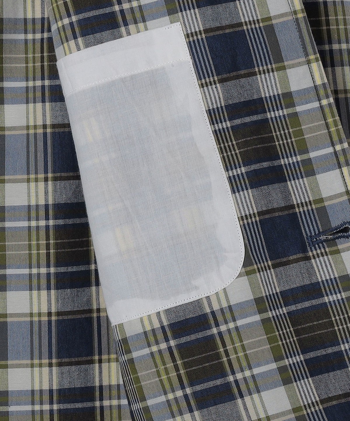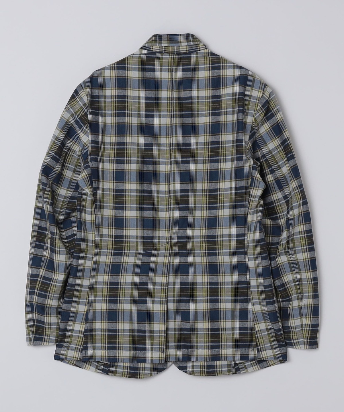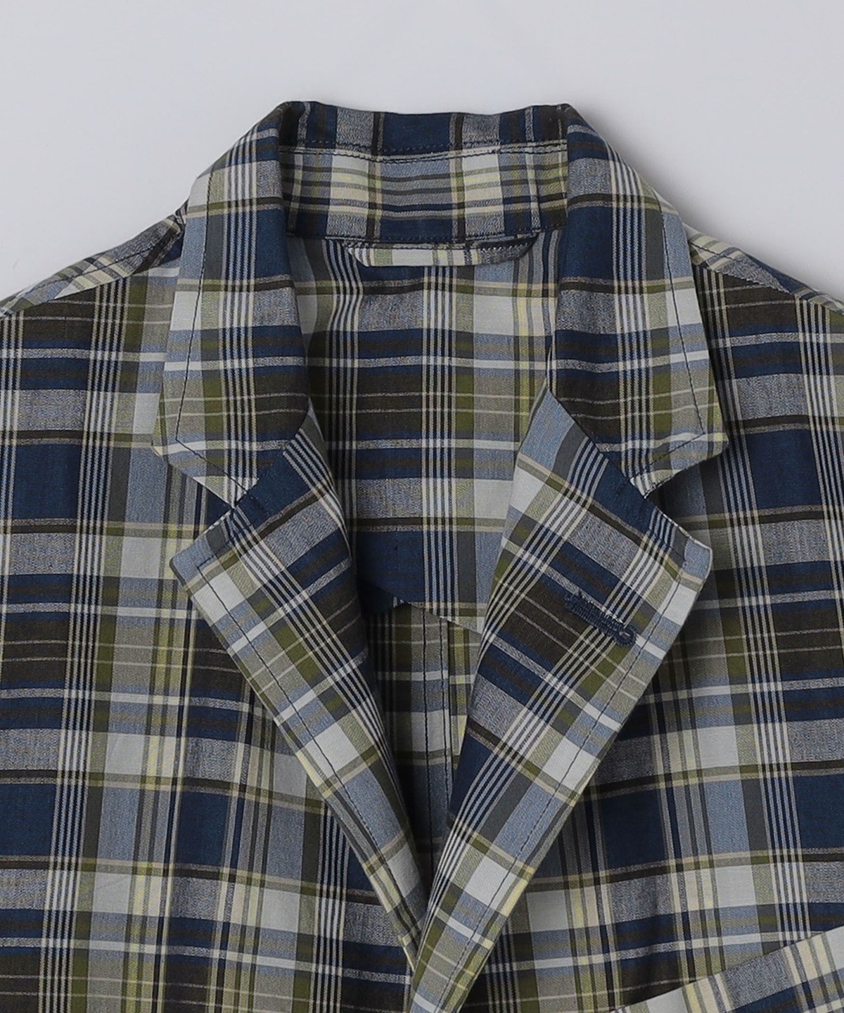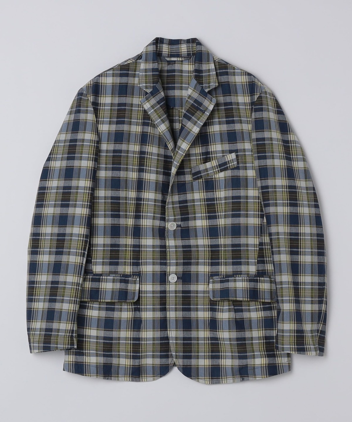 マドラスチェック柄の2つボタンシングルブレストジャケット。