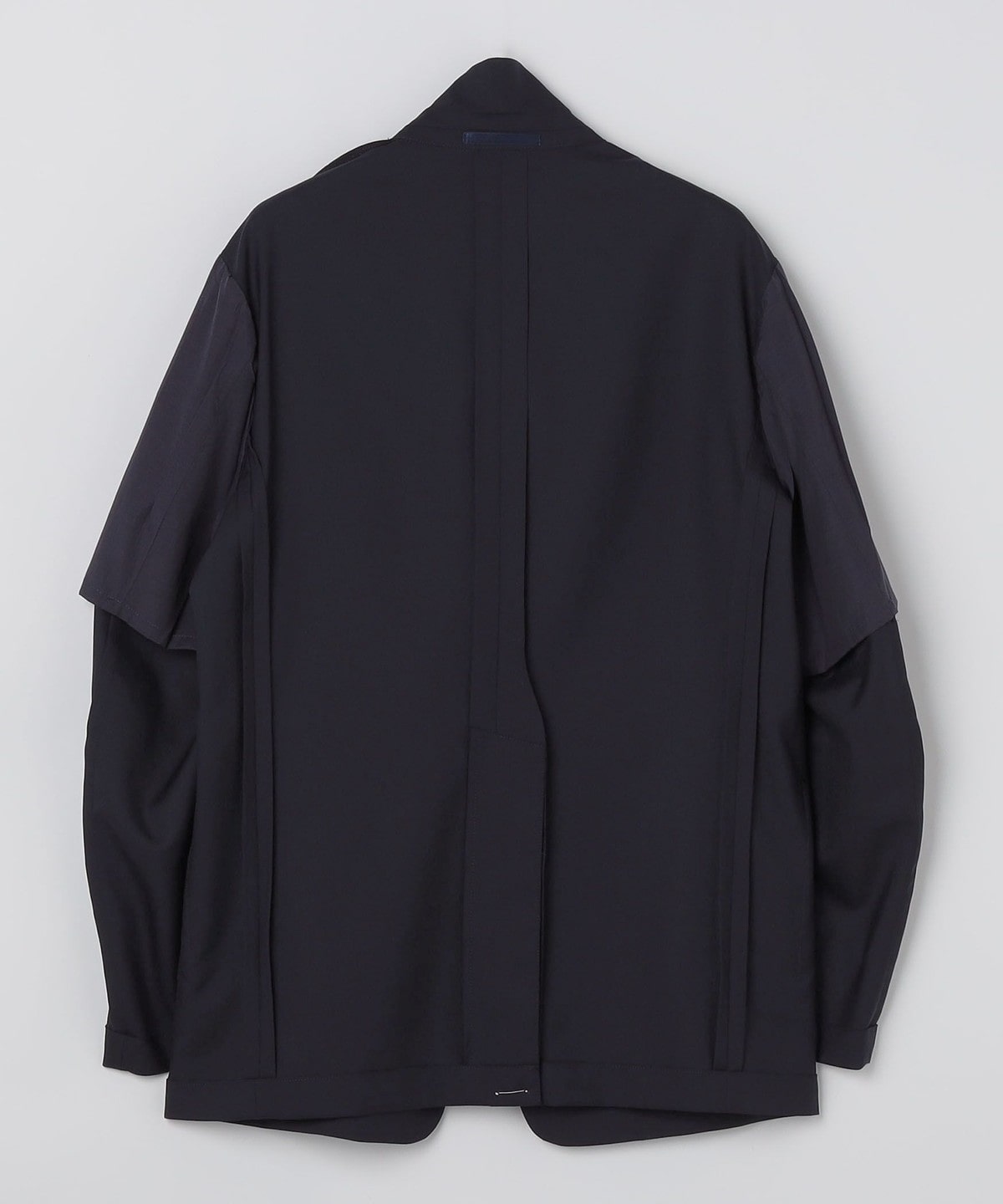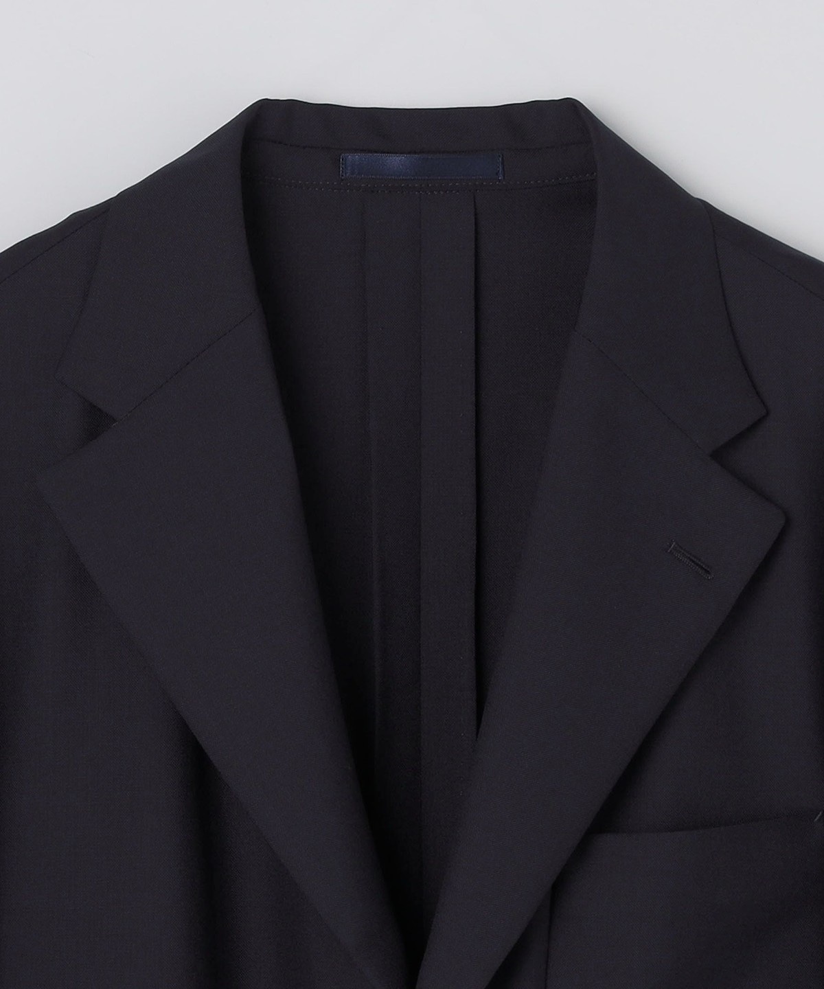 トロピカルウールを使用した、裏地なし・一重仕立てのネイビージャケット。