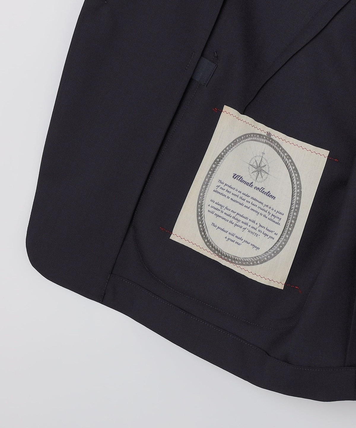 毛芯、パット、垂れ綿、接着芯などの副資材を一切使わずに立体的でキレイなジャケットに仕上げました。