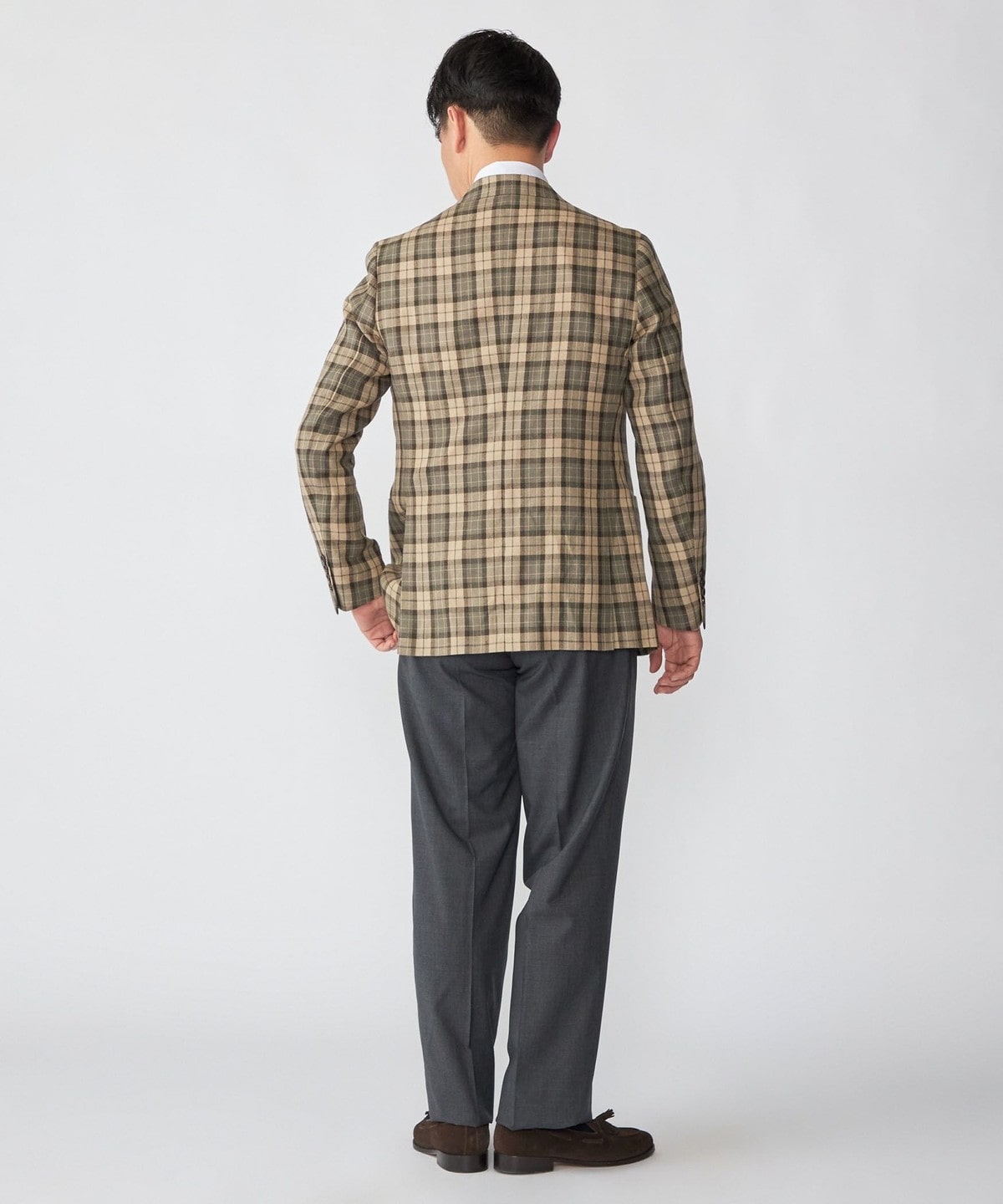 硬派なタイドアップスタイルはもちろん、ウール/リネンの軽やかさを活かしてリネンシャツやTシャツを使用したドレスカジュアルスタイルをお楽しみいただくのもおすすめです。