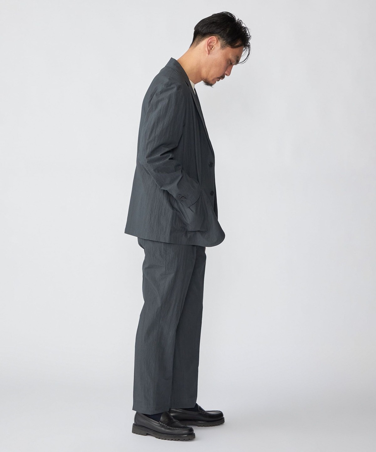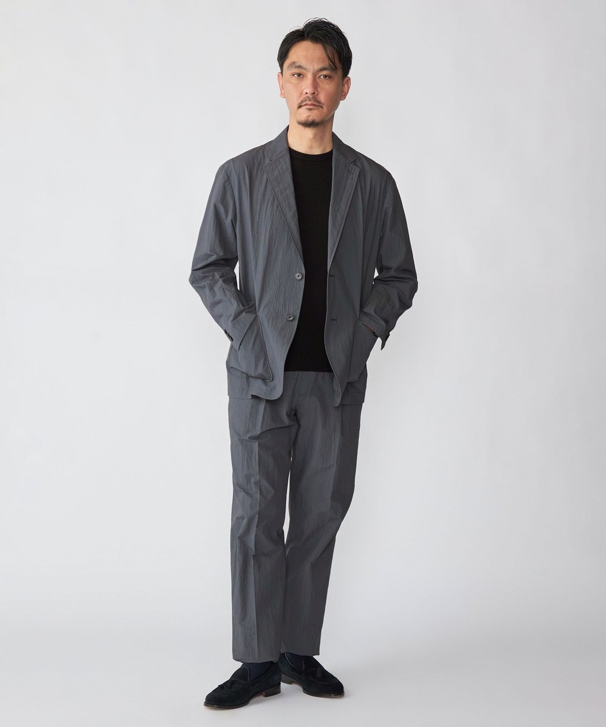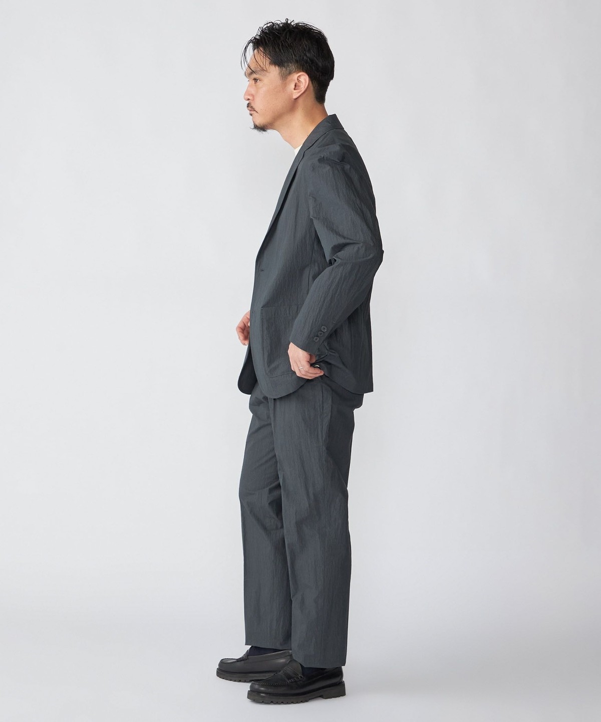 同素材でセットアップ着用可能なシャツとパンツをシルエット違いで2型展開。