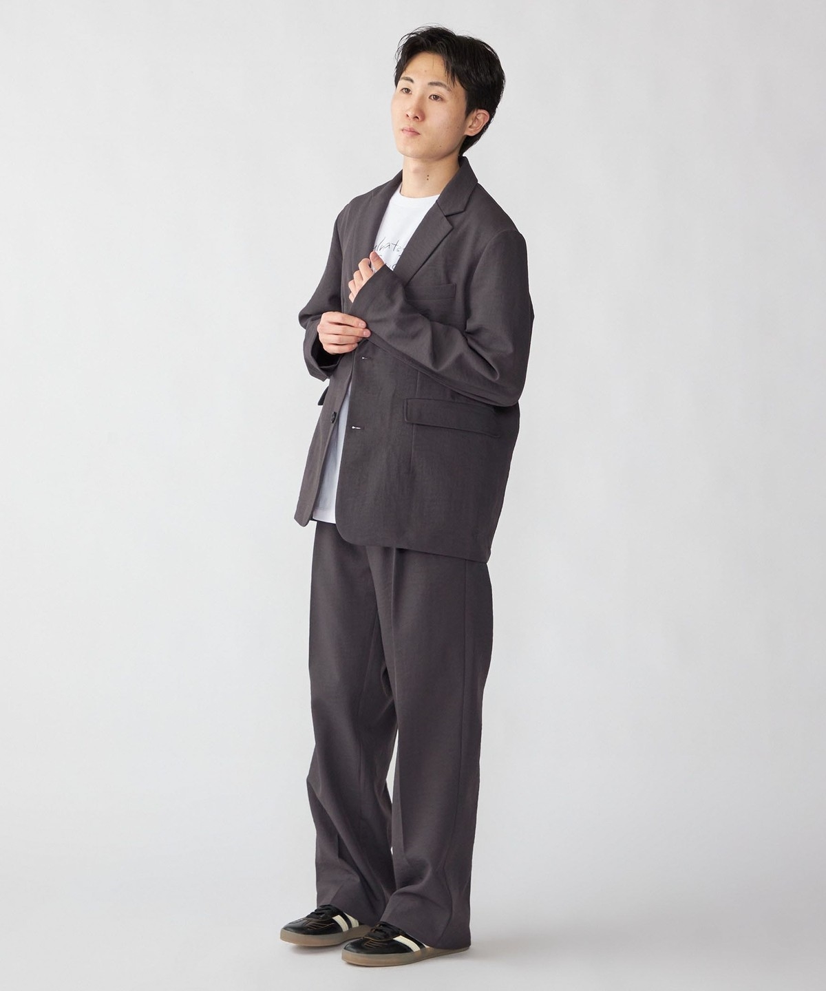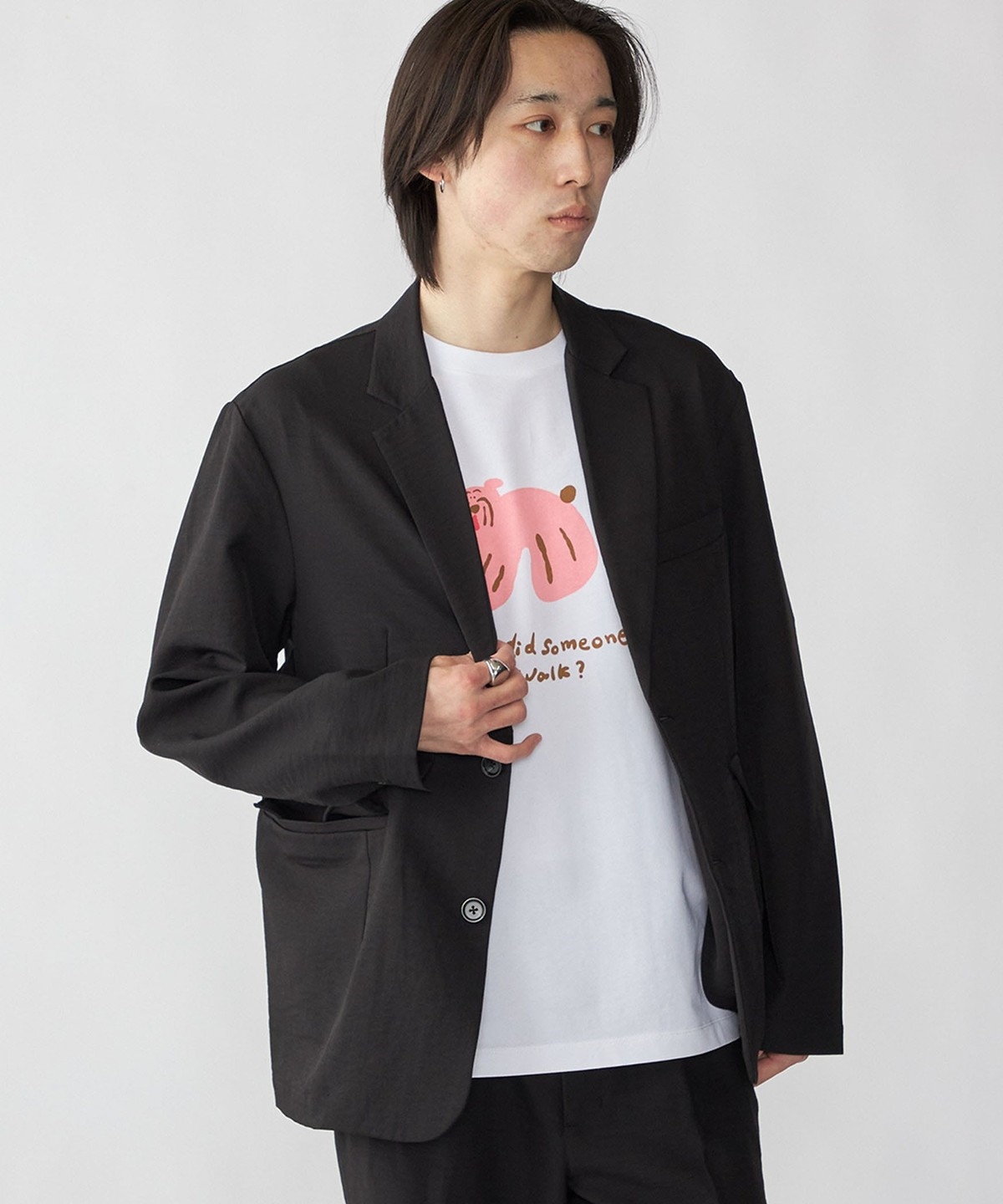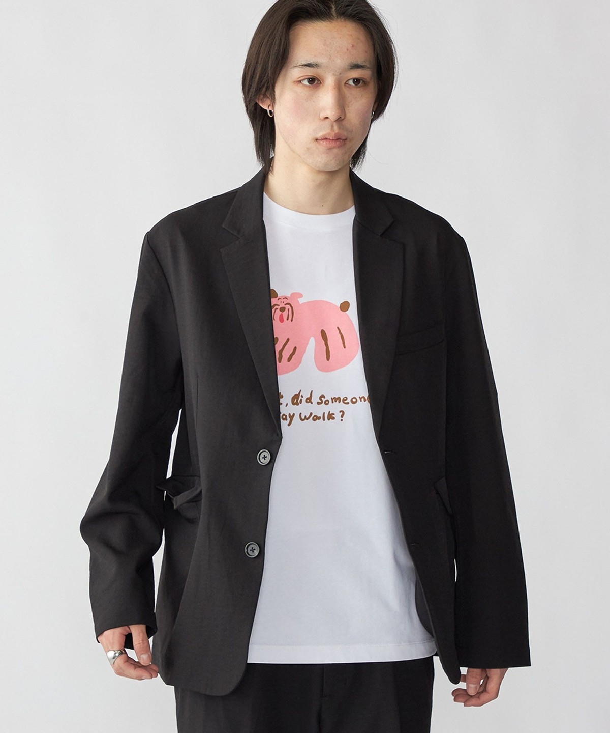 ルーズシルエットで、シャツはもちろんTシャツの上でも着用できるカジュアルジャケット。