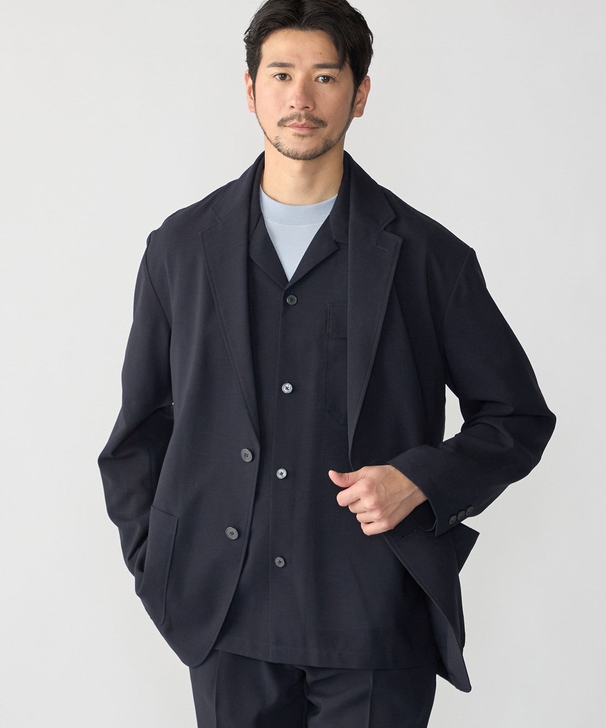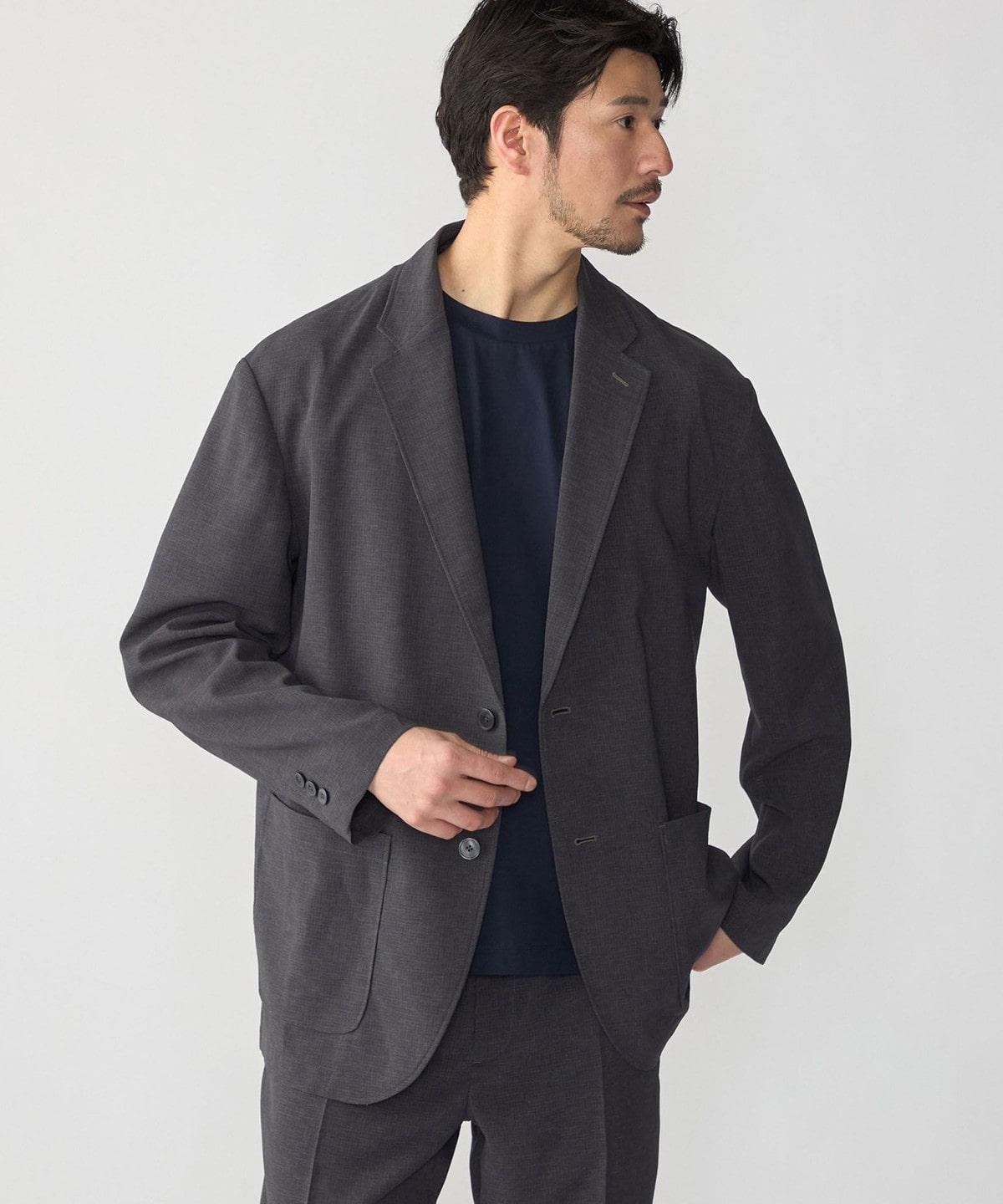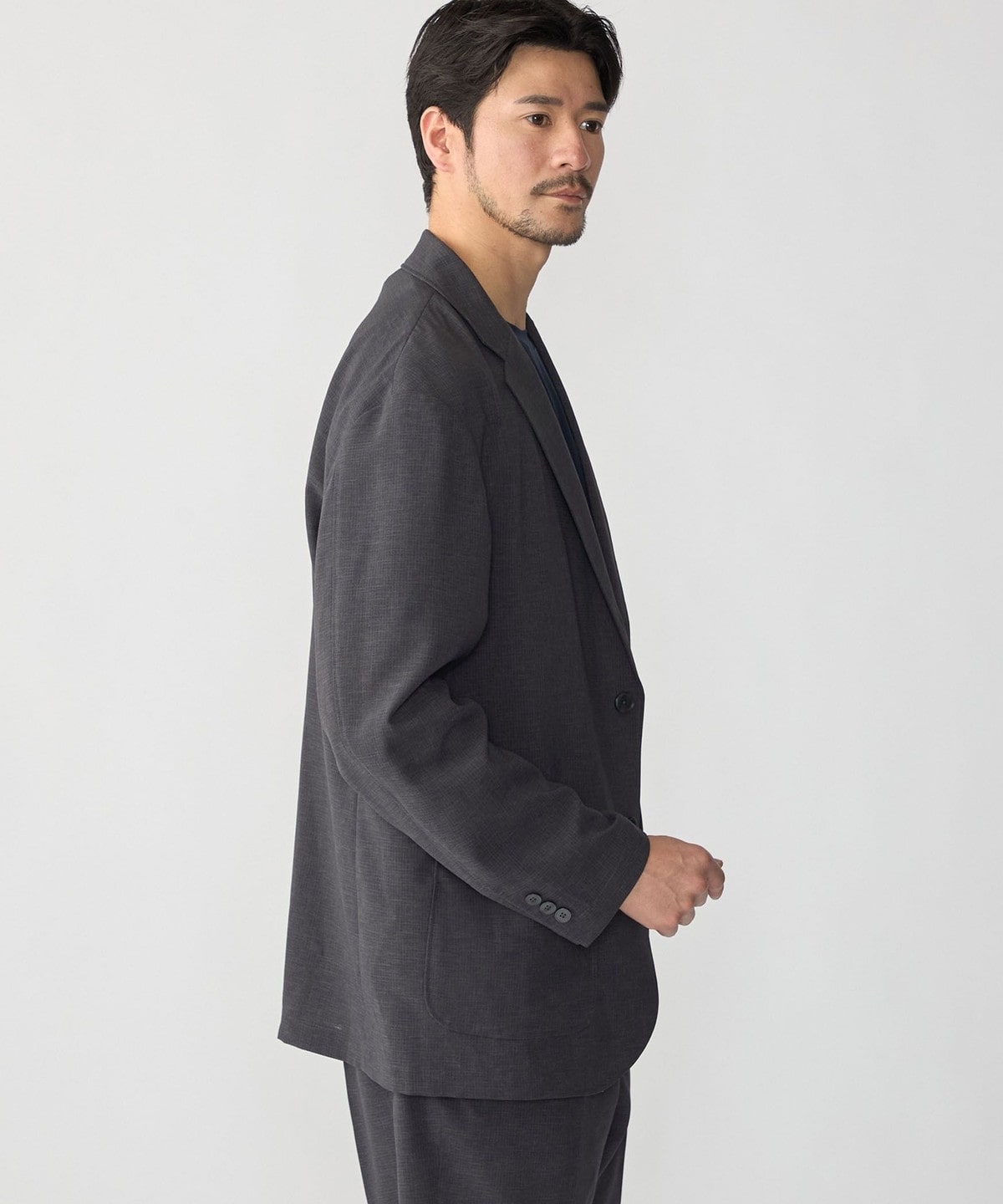 セットアップはもちろんジャケット単品でもお使いいただきやすく、幅広いスタイリングをお楽しみいただけます。