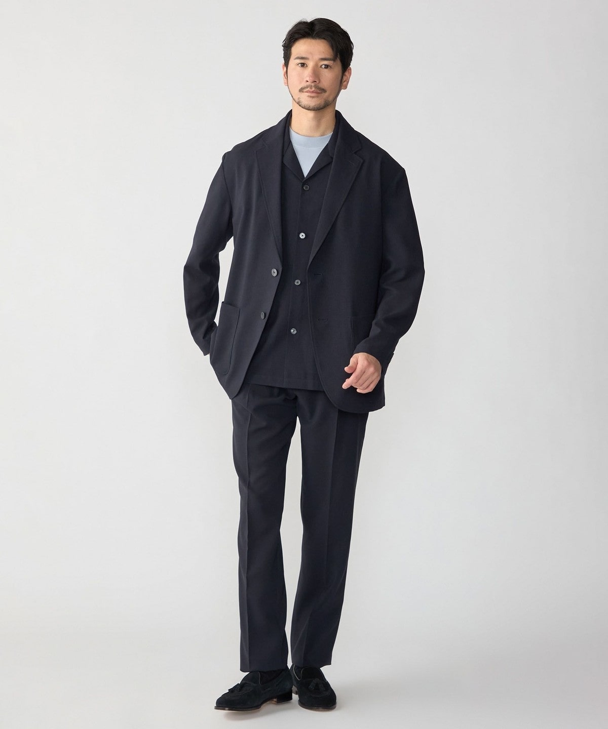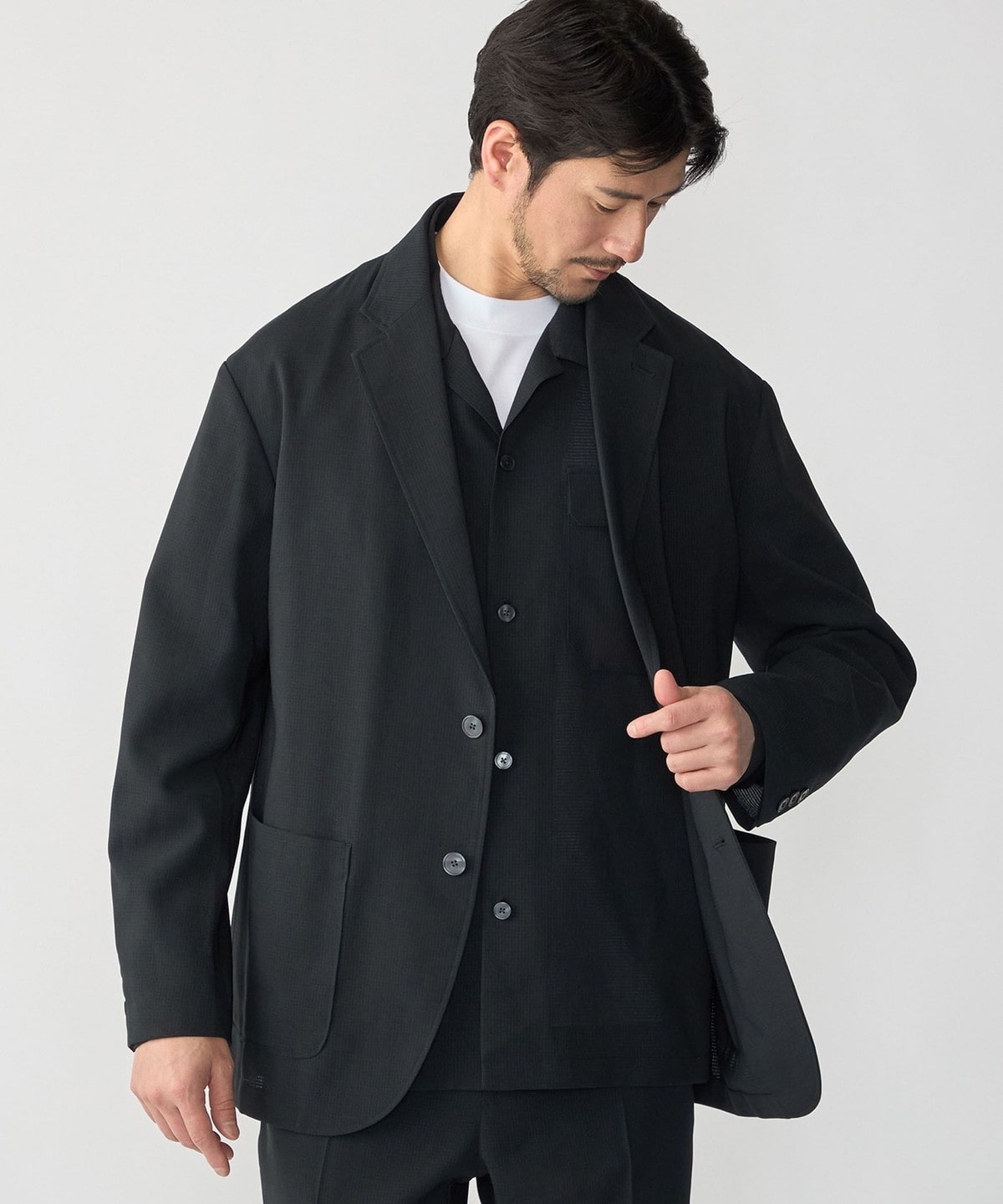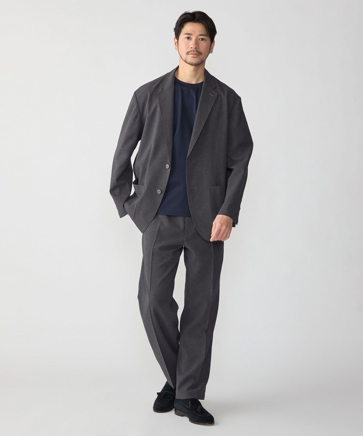 セットアップはもちろんジャケット単品でもお使いいただきやすく、幅広いスタイリングをお楽しみいただけます。