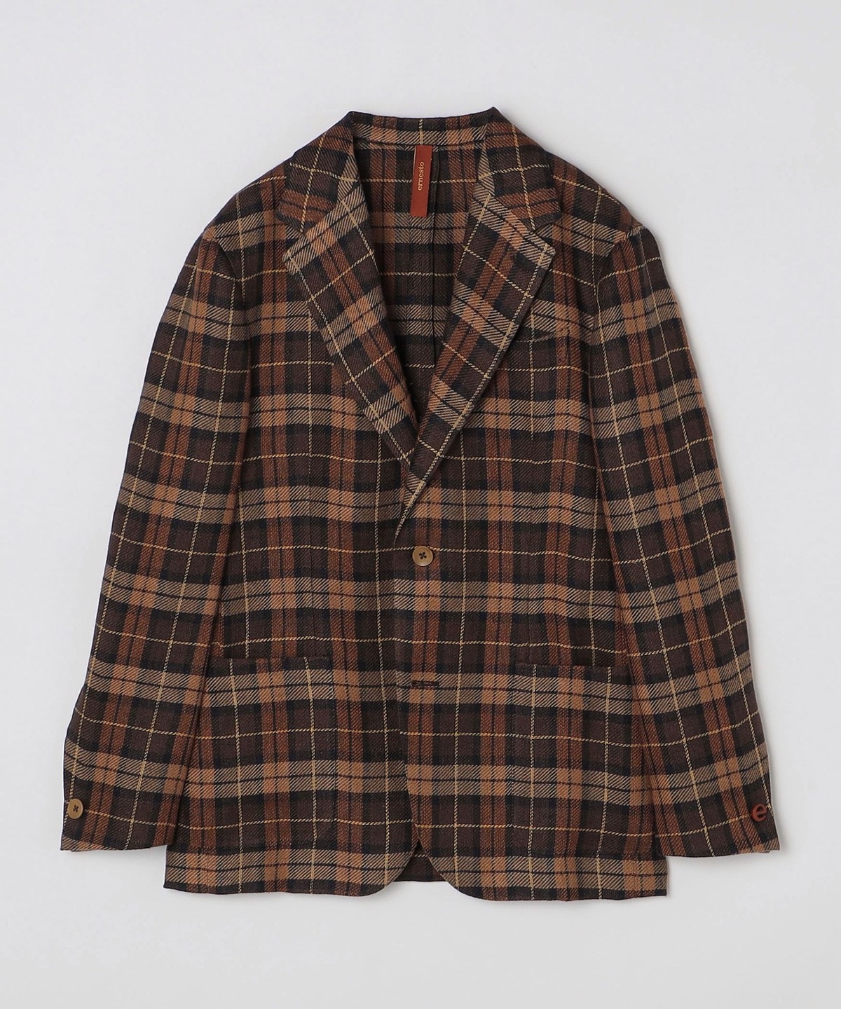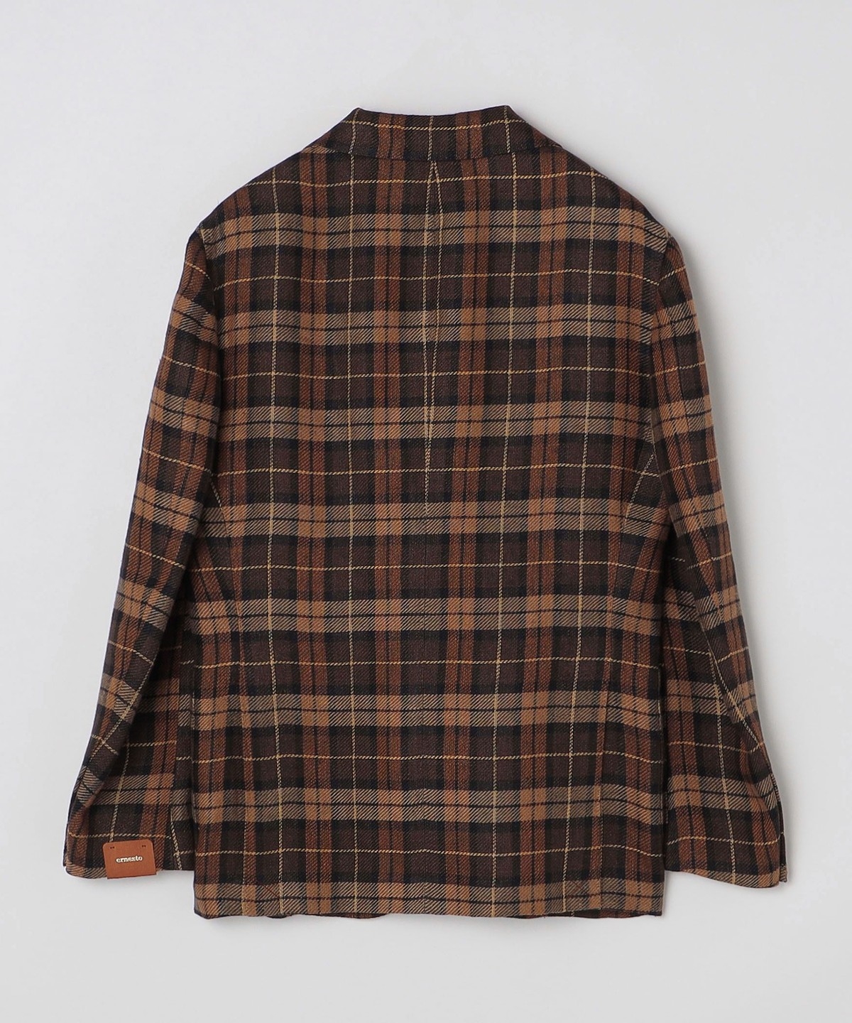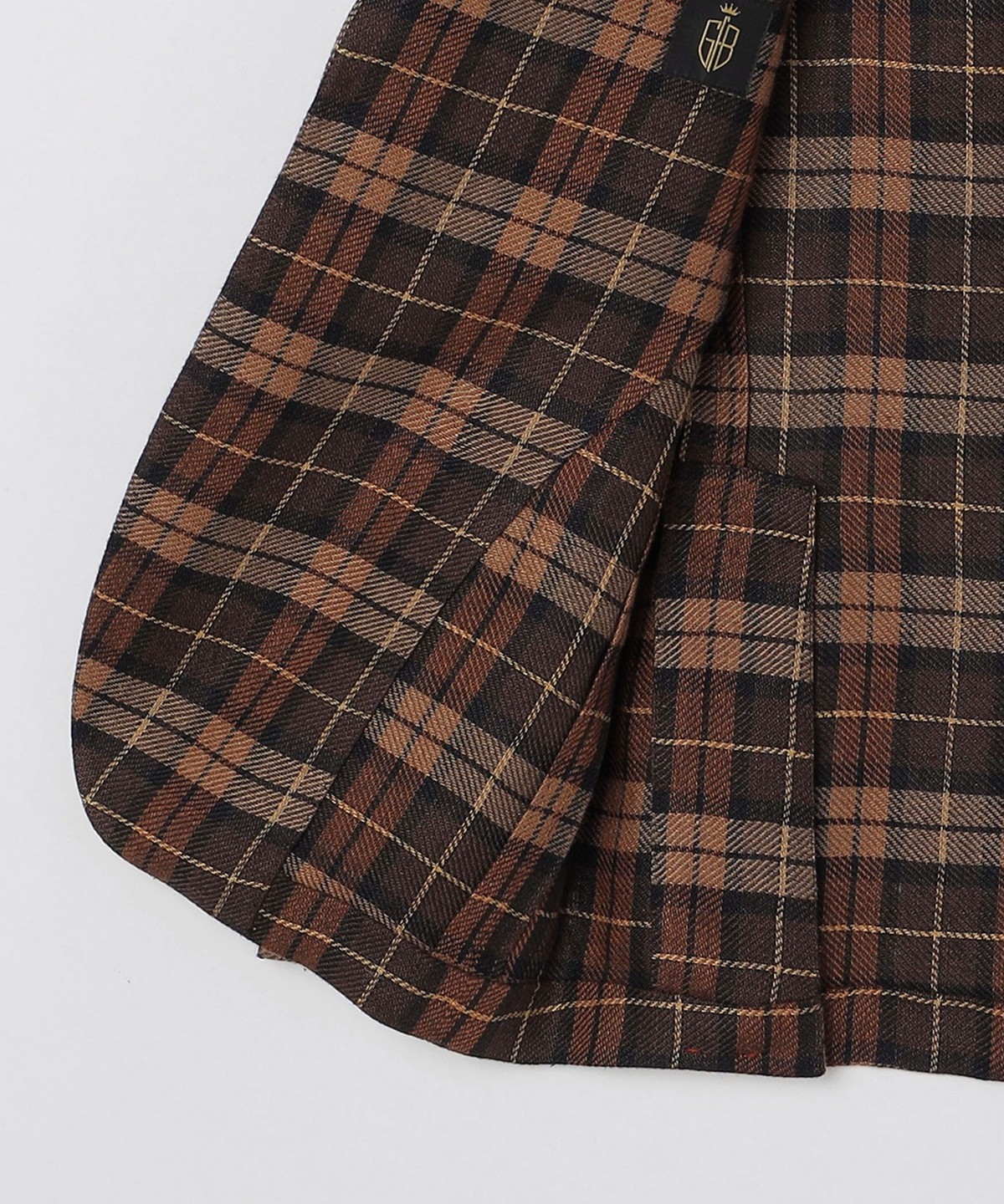 リネンツイードの生地感と表情豊かなタータンチェック柄が目を引くジャケット。