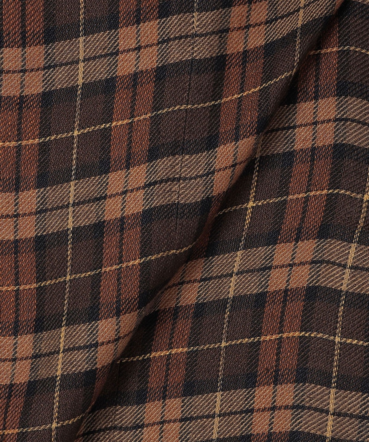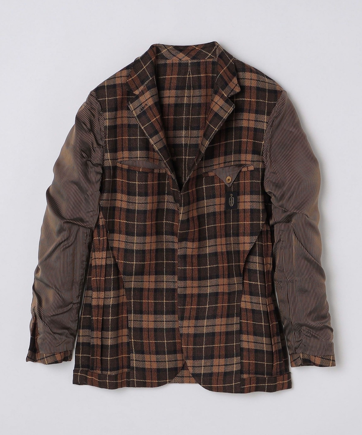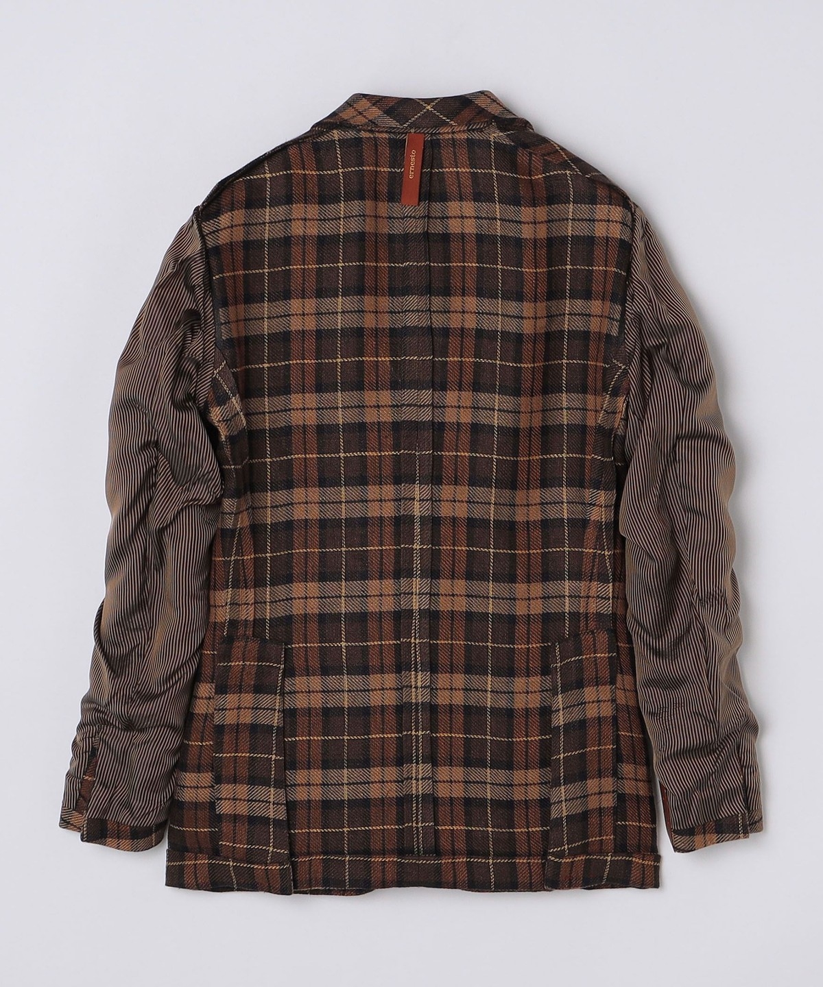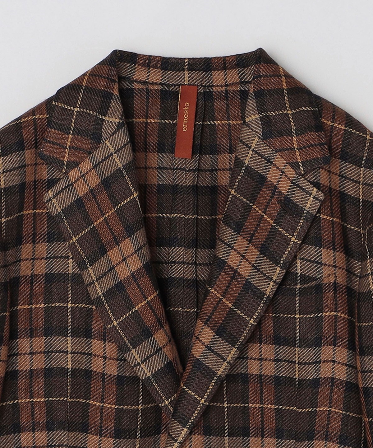 リネンツイードの生地感と表情豊かなタータンチェック柄が目を引くジャケット。