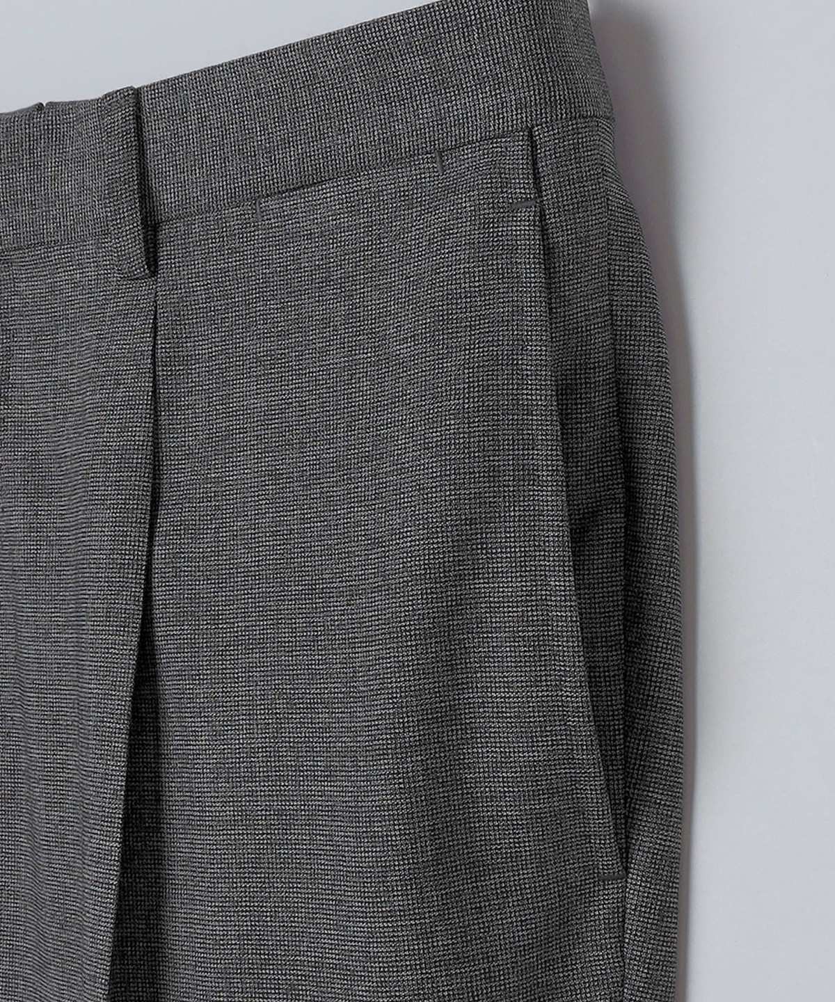 ピンチェックは遠目からは無地に見えるほどの細かな柄なので、ストライプなどの柄物もお使いいただきやすくなっております。