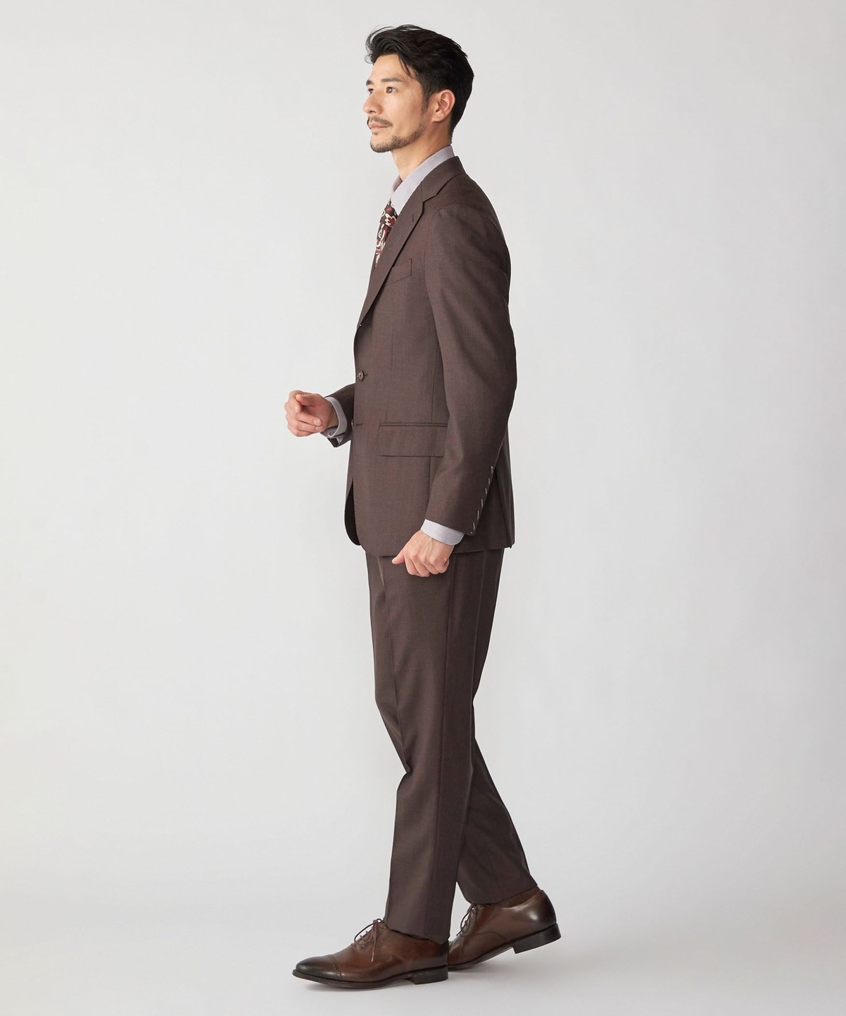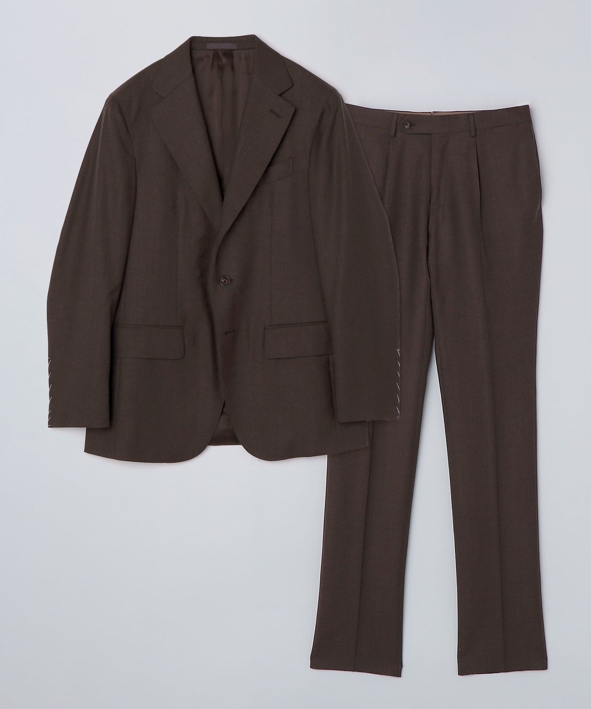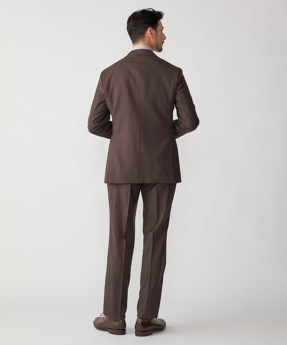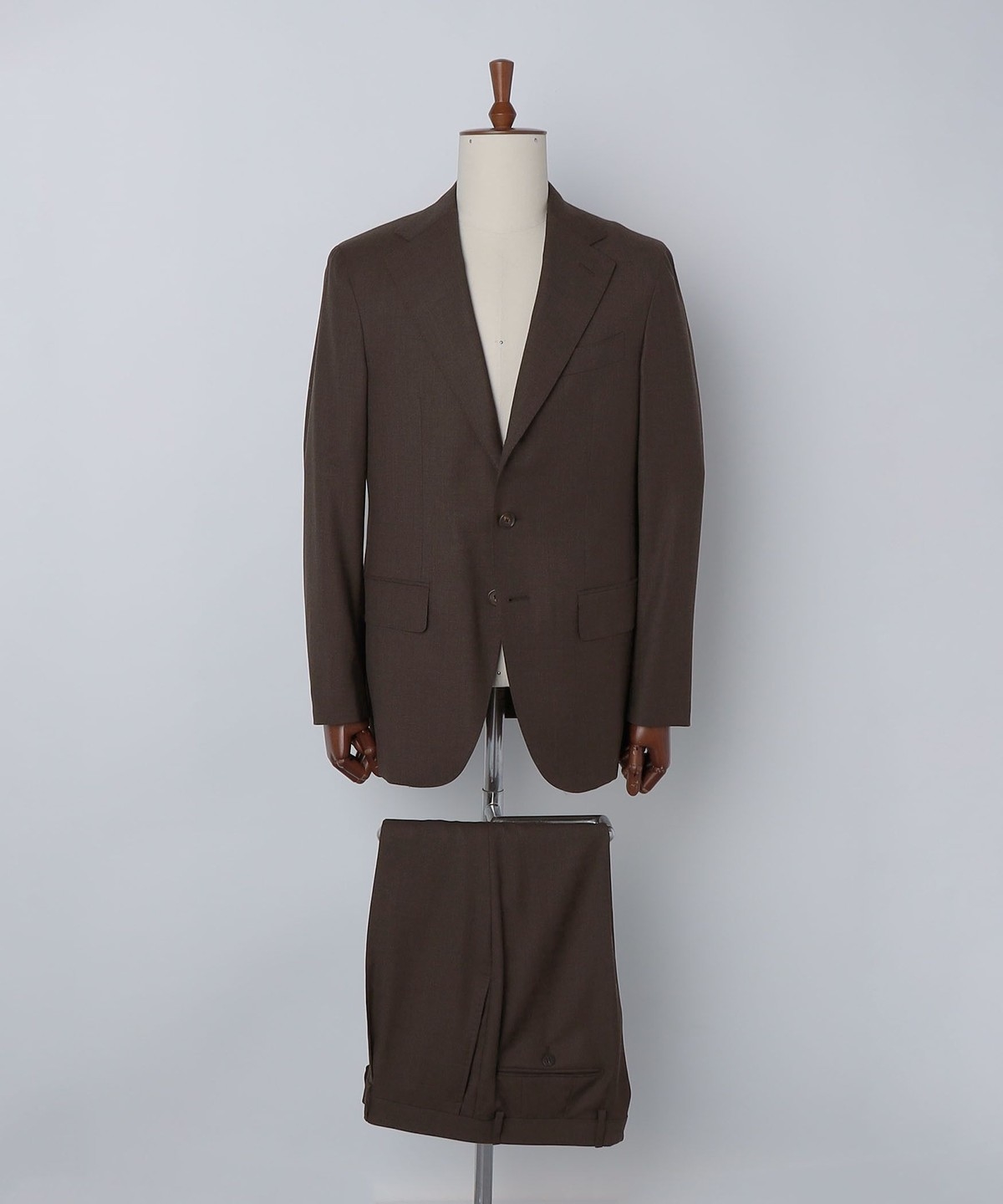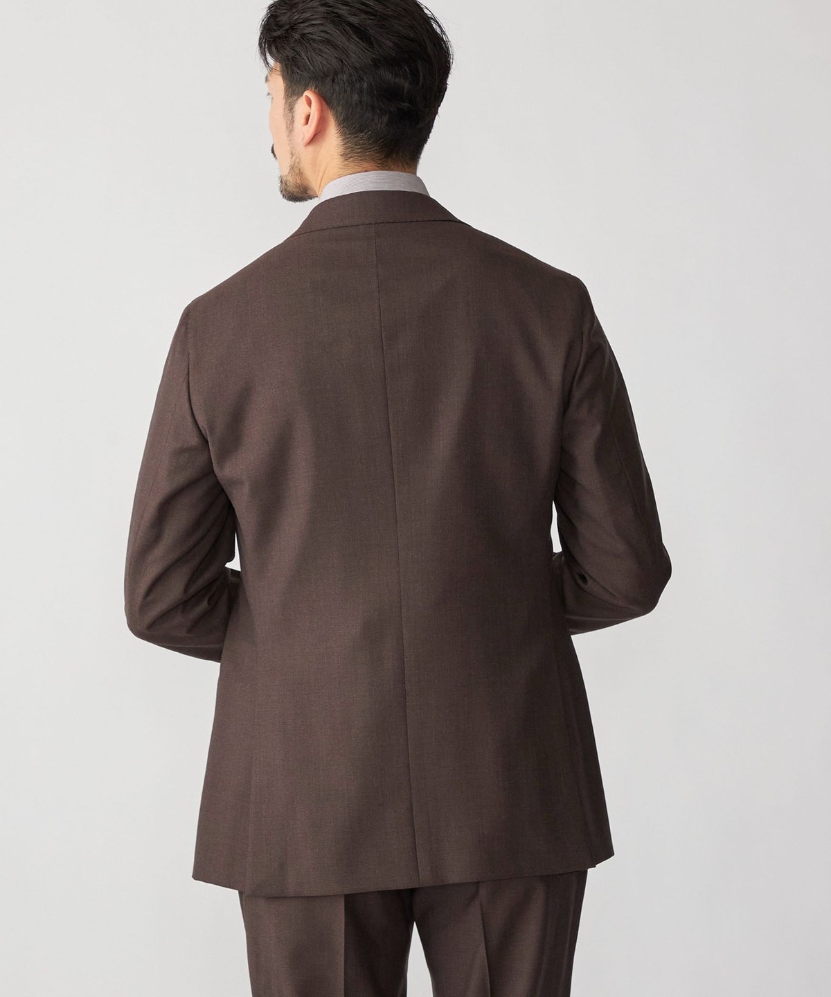 ウール100%の生地を使用したブラウンスーツ。