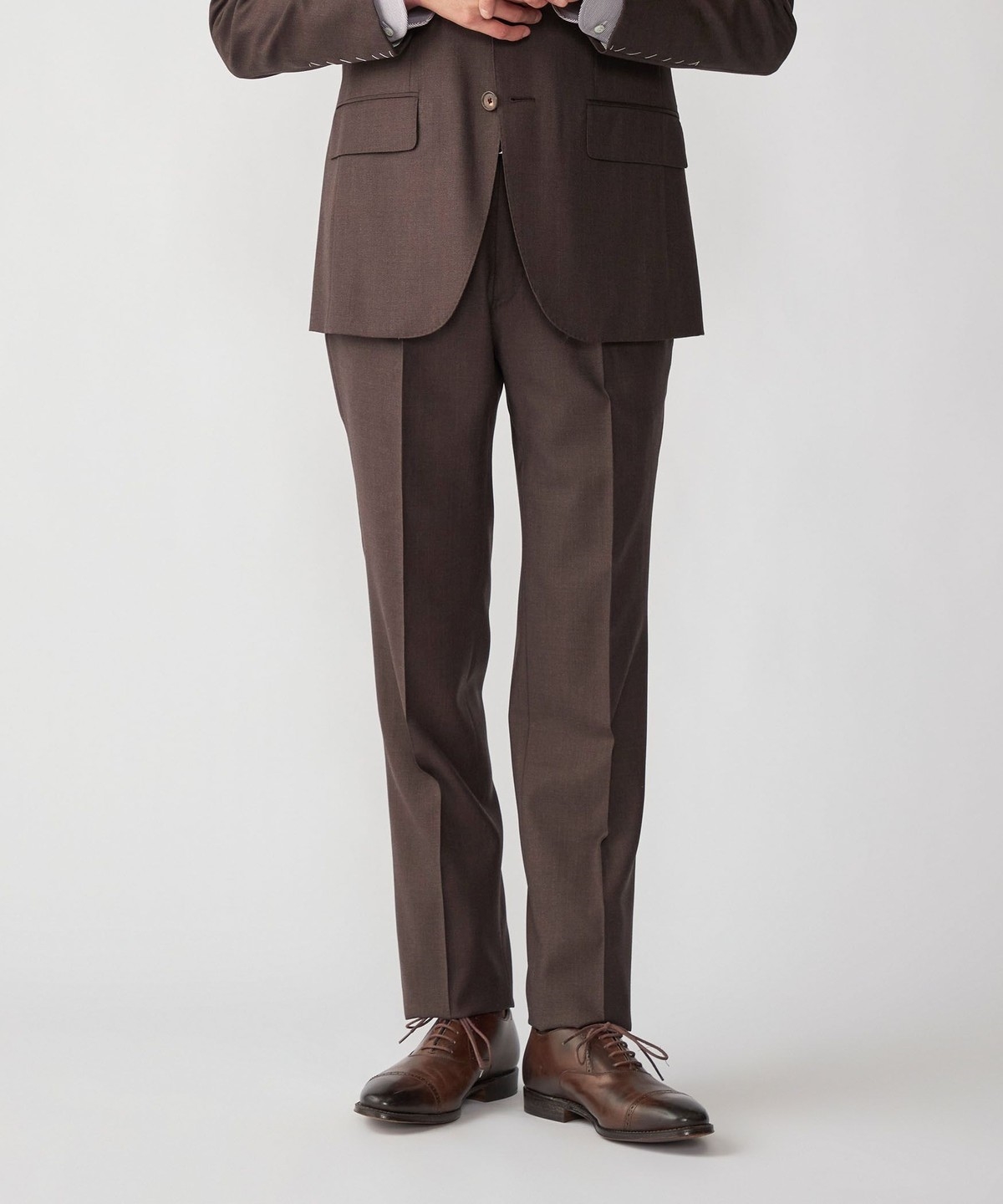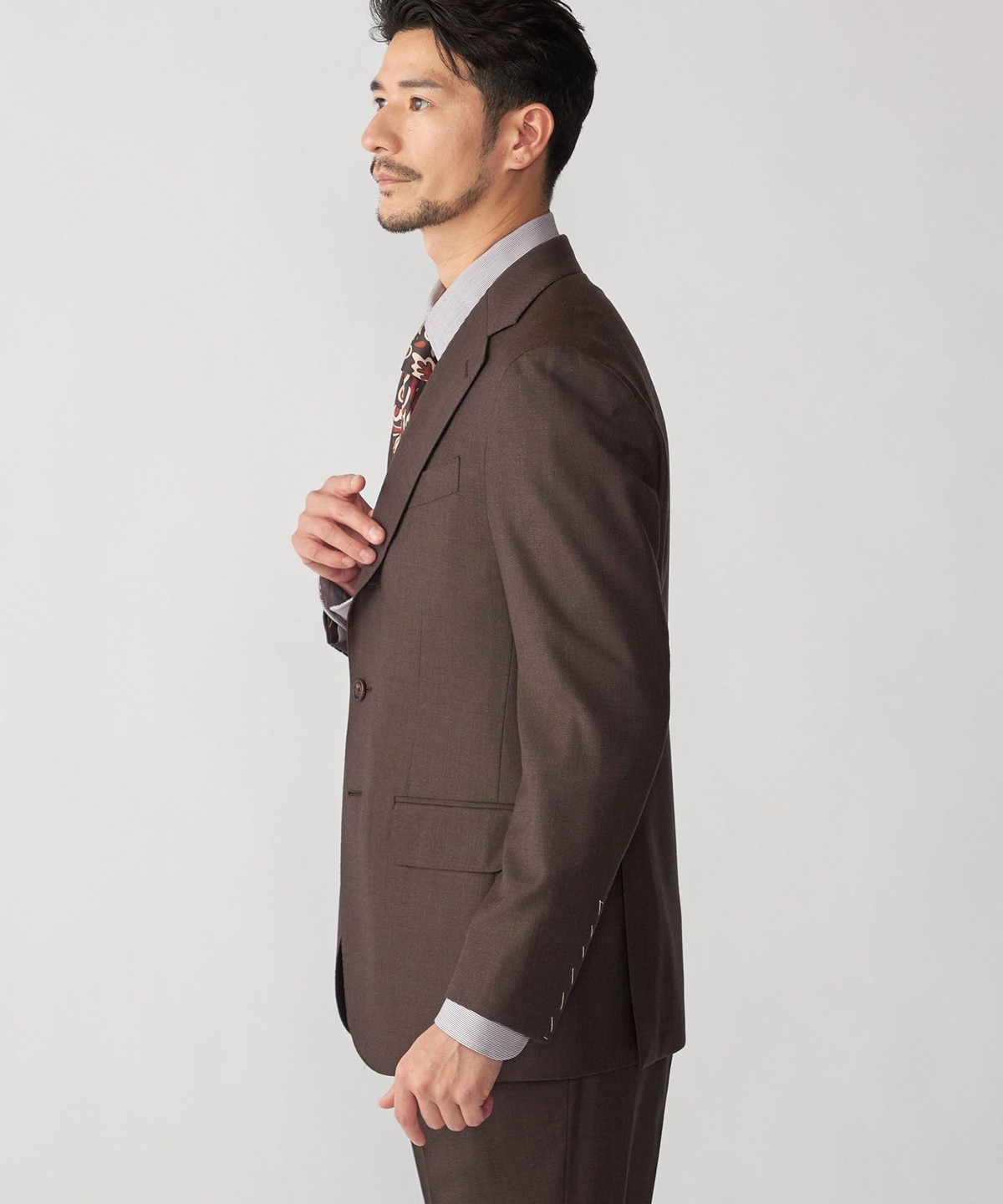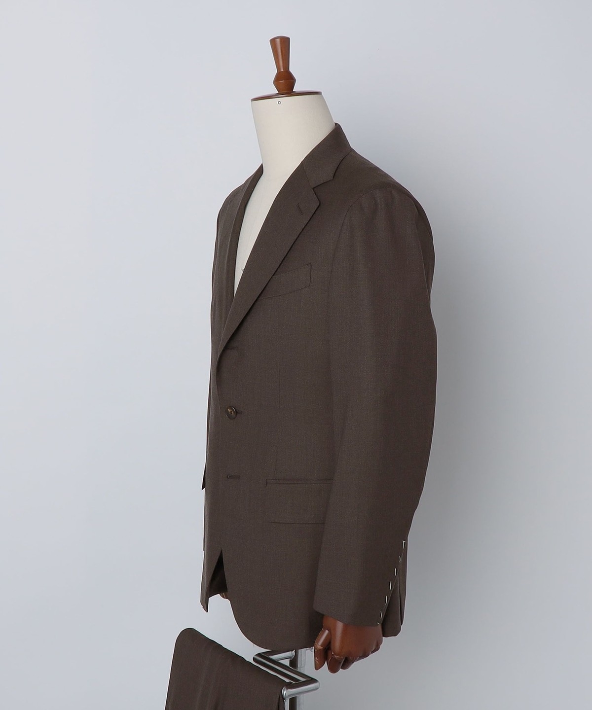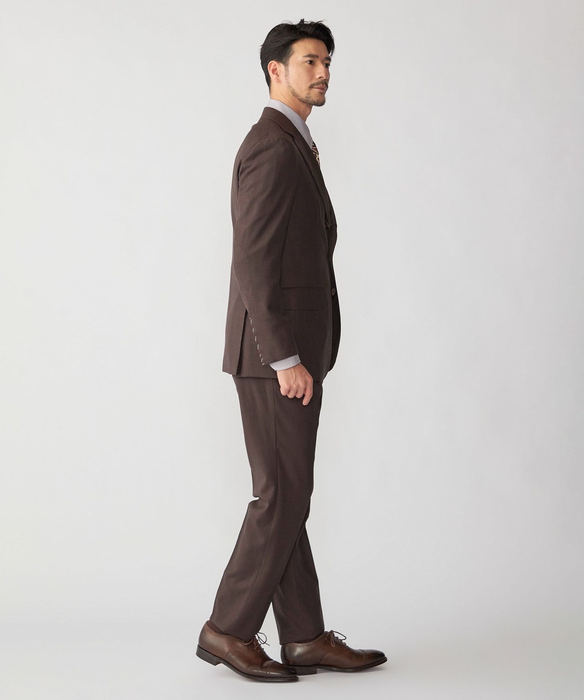 ウール100%の生地を使用したブラウンスーツ。