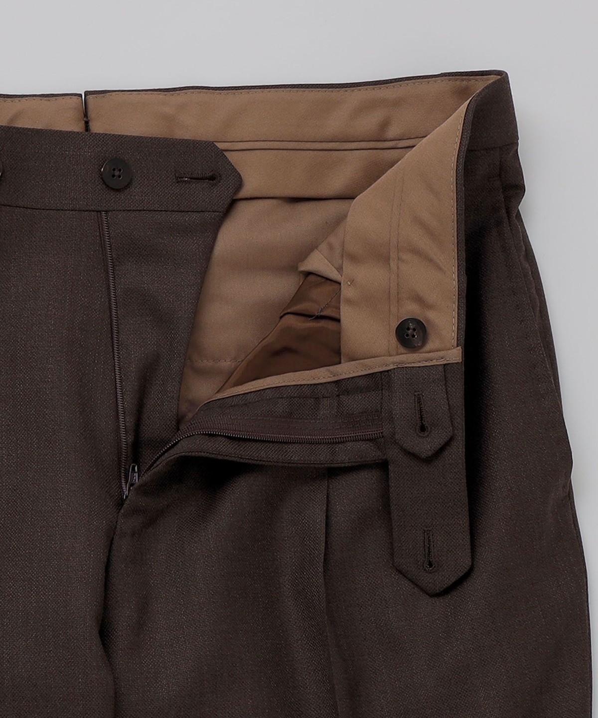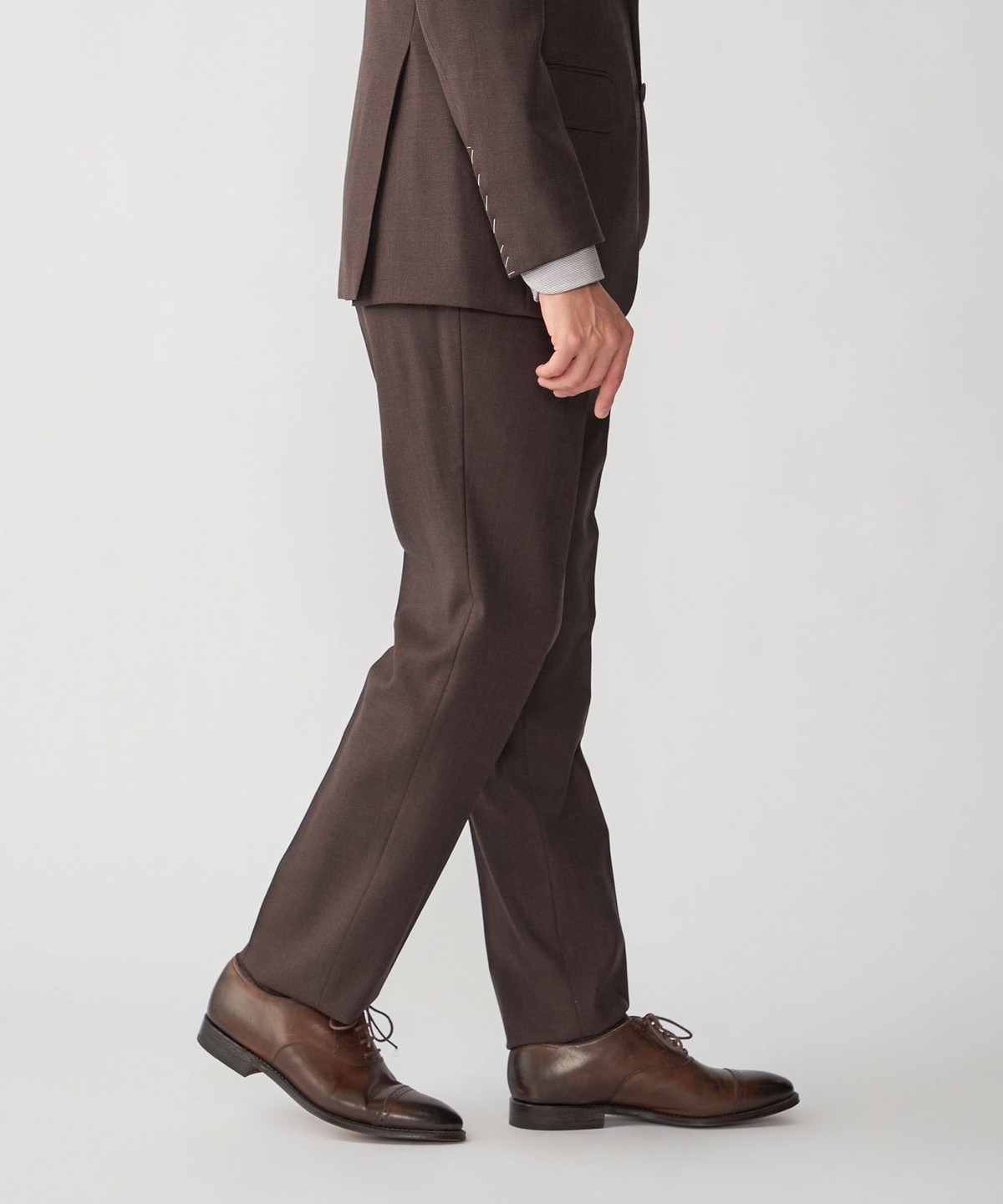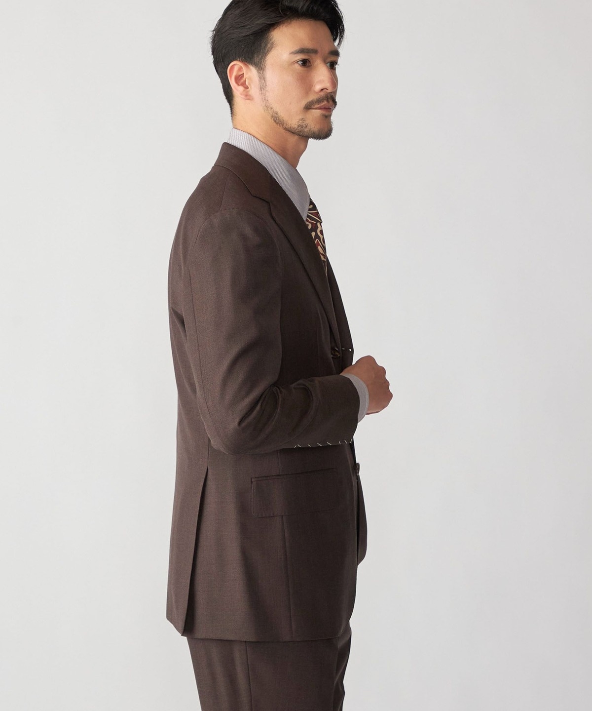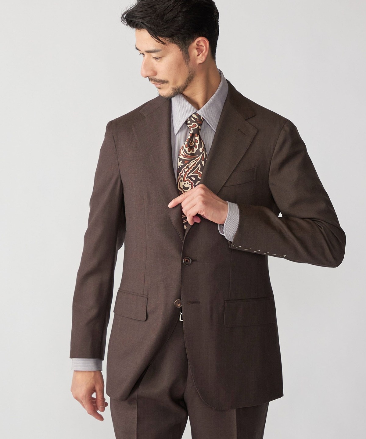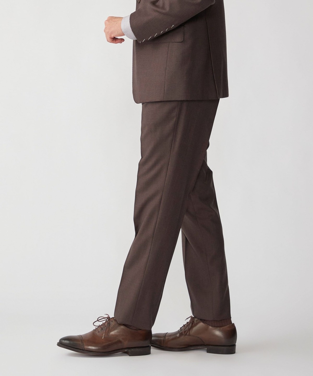 ウール100%の生地を使用したブラウンスーツ。