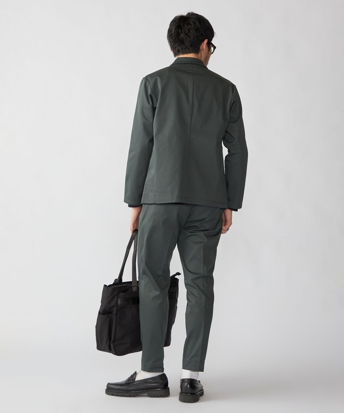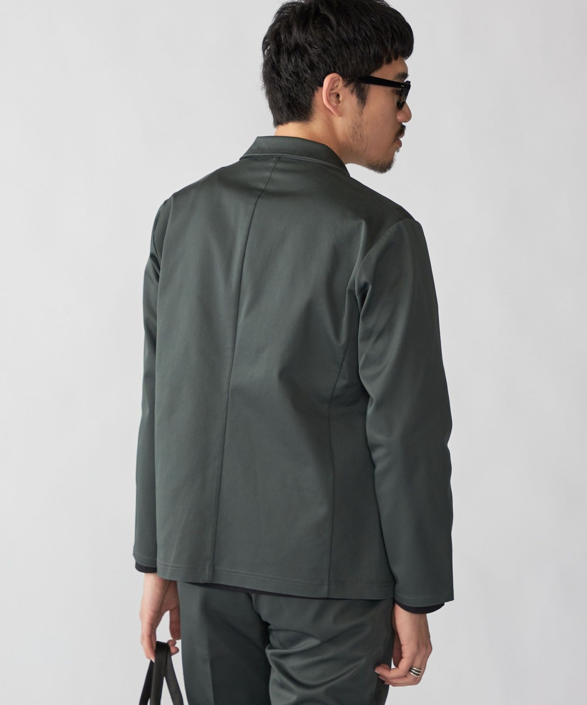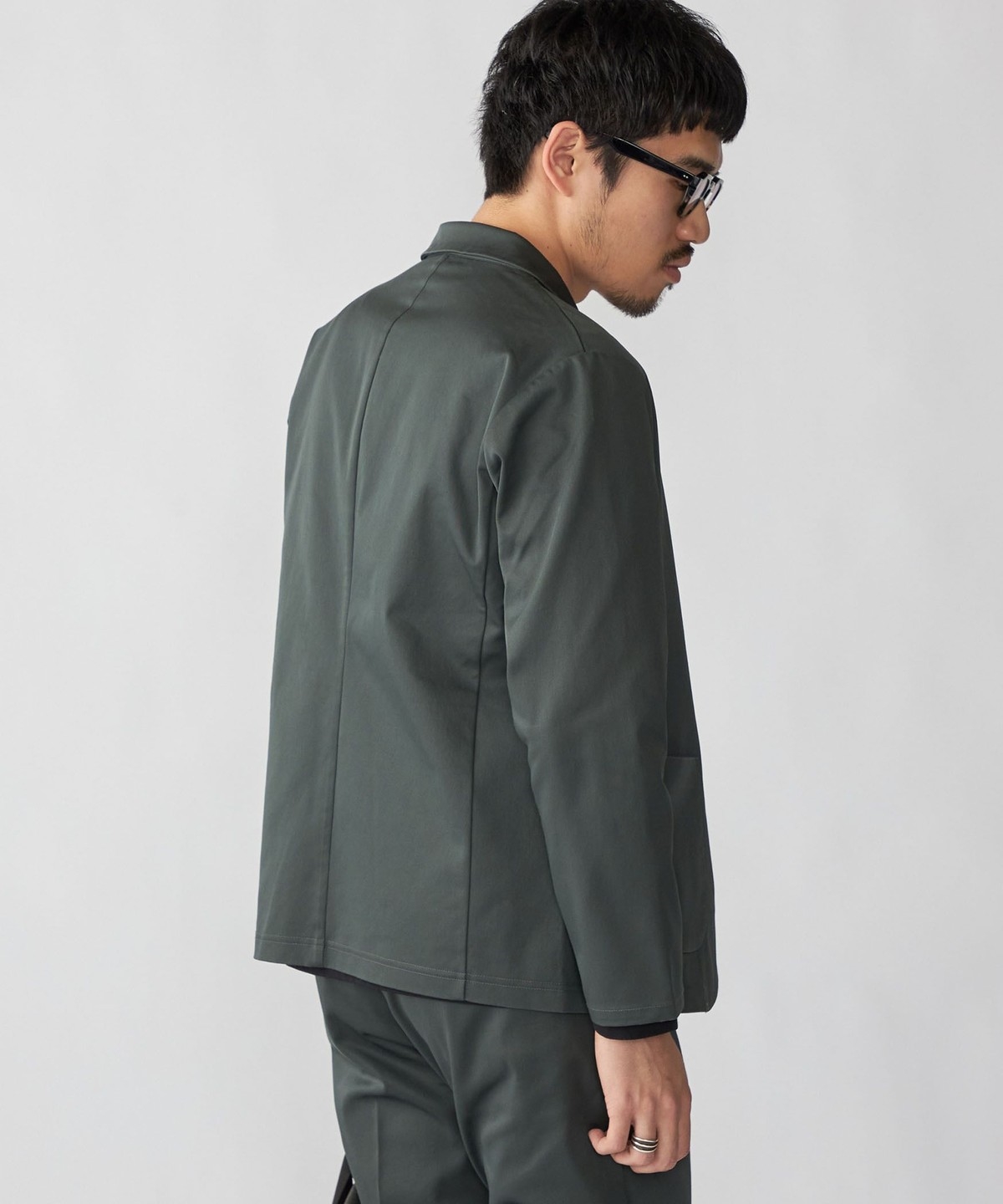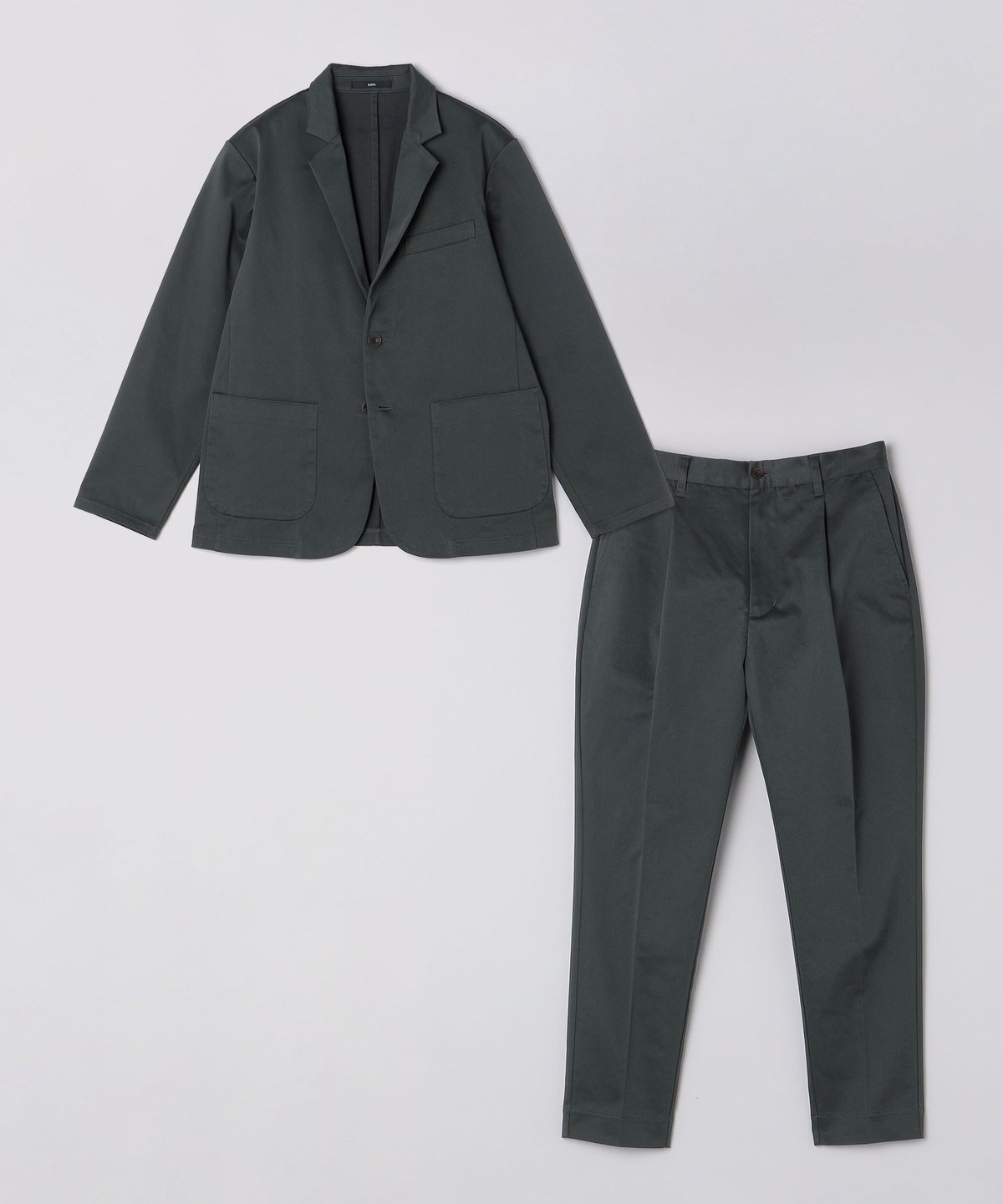 ストレッチの効いたサテン素材を使用した、コストパフォーマンスに優れたジャケットとスラックスのセットアップアイテム