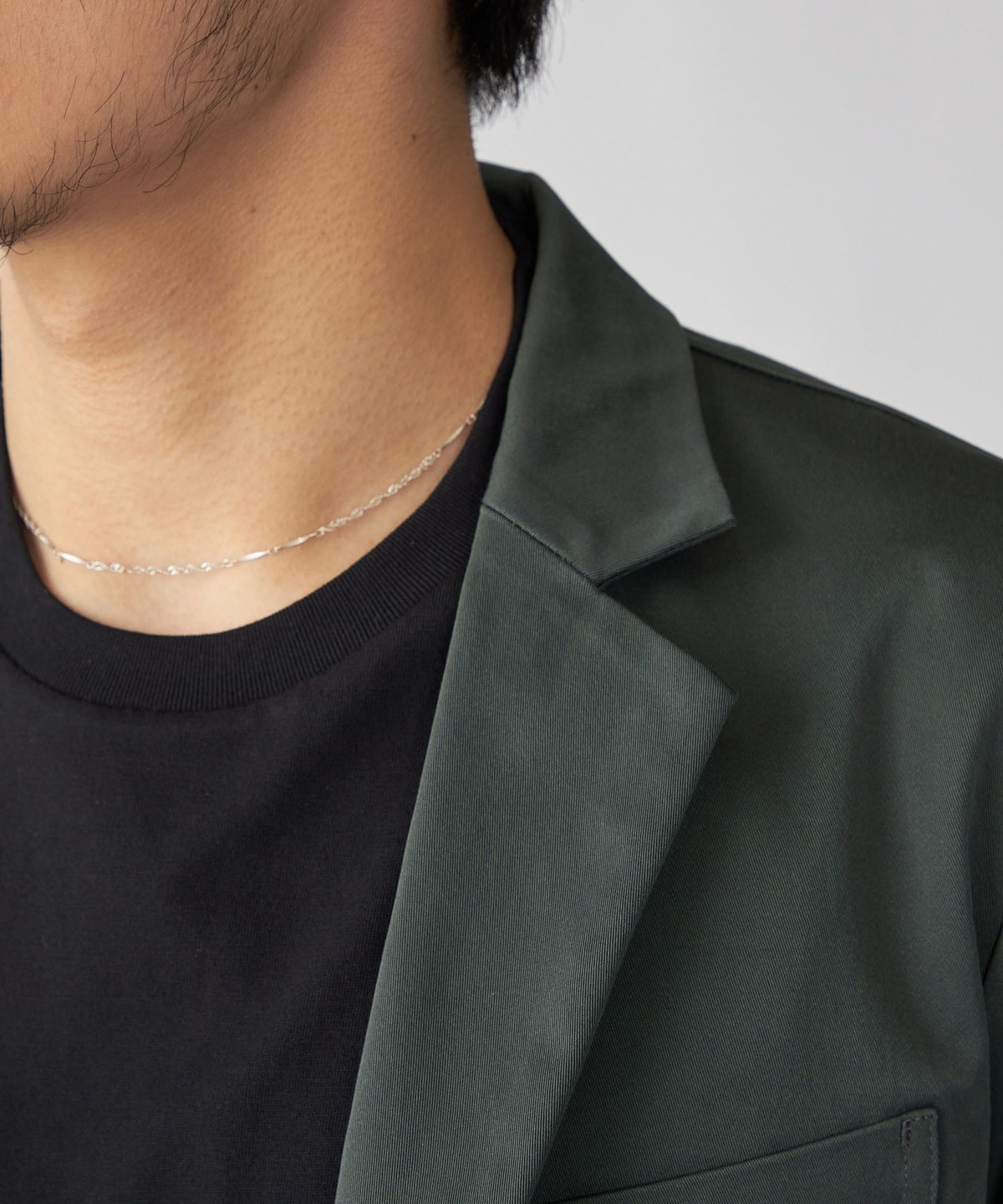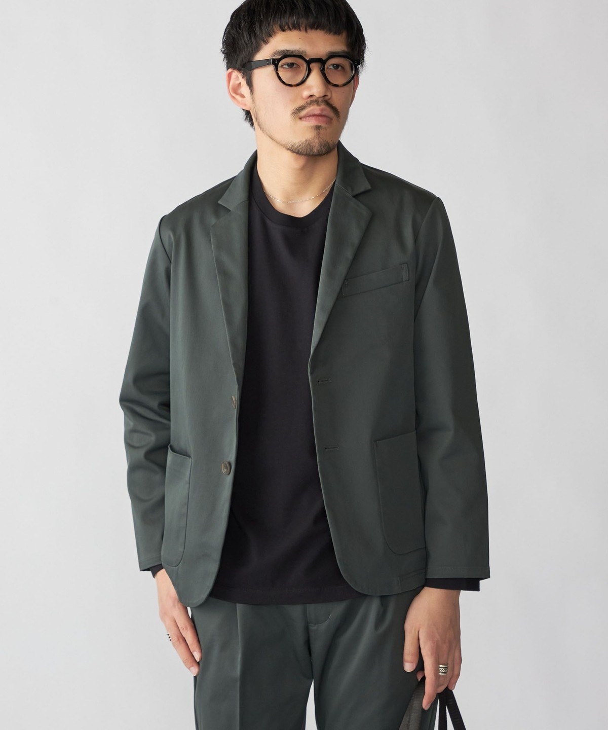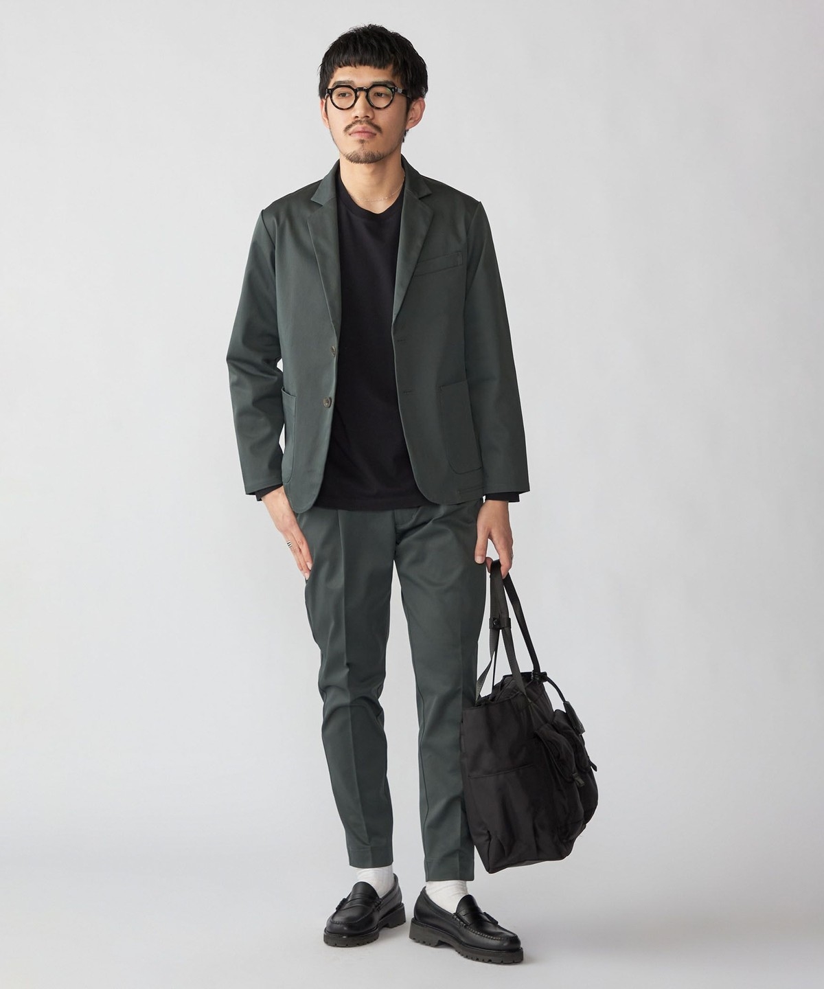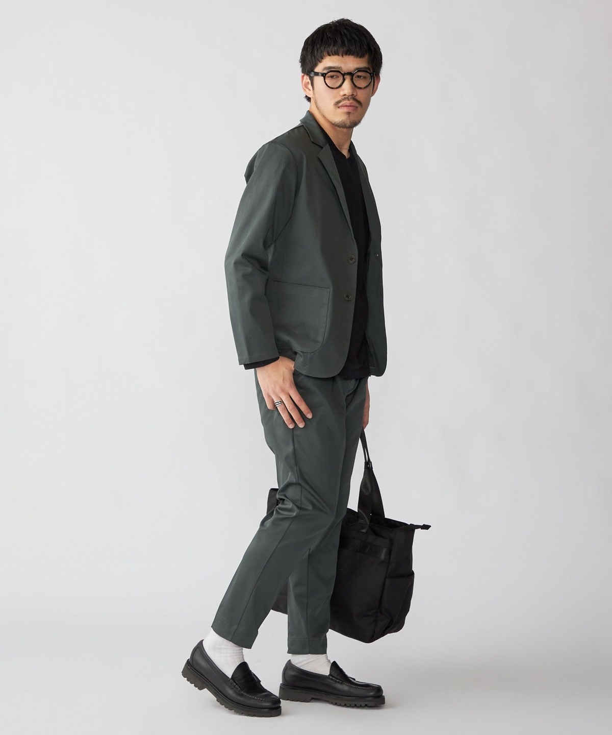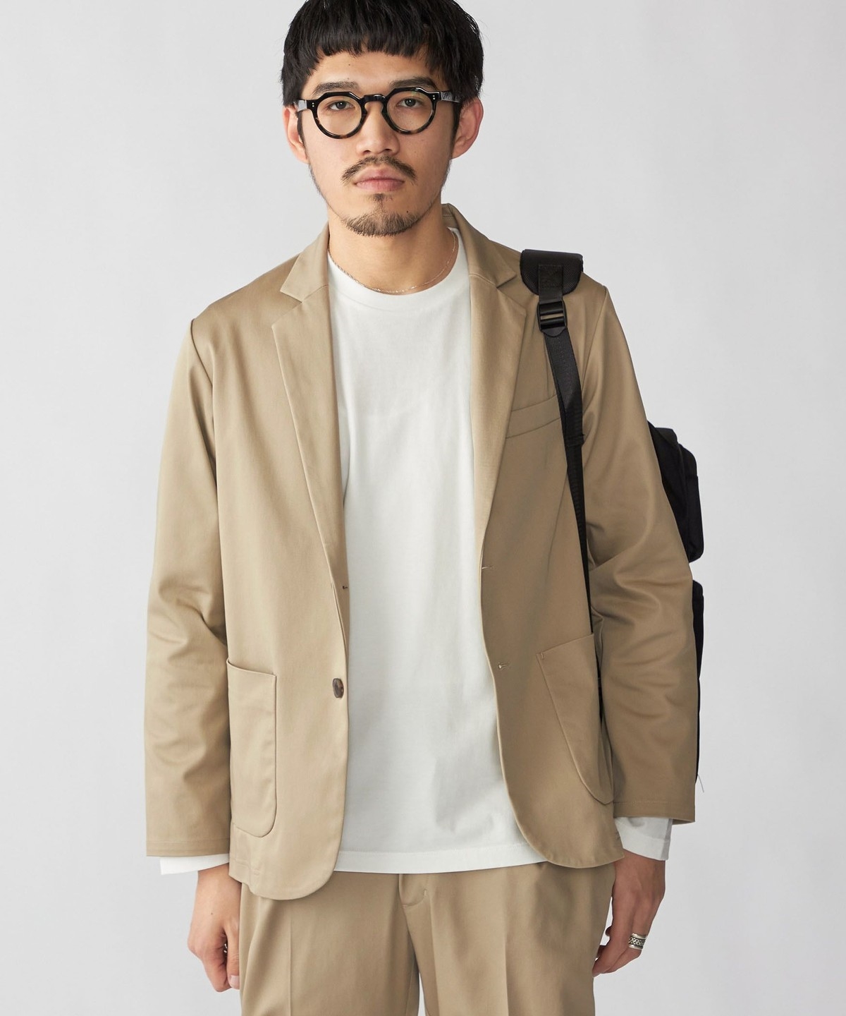 ストレッチの効いたサテン素材を使用した、コストパフォーマンスに優れたジャケットとスラックスのセットアップアイテム