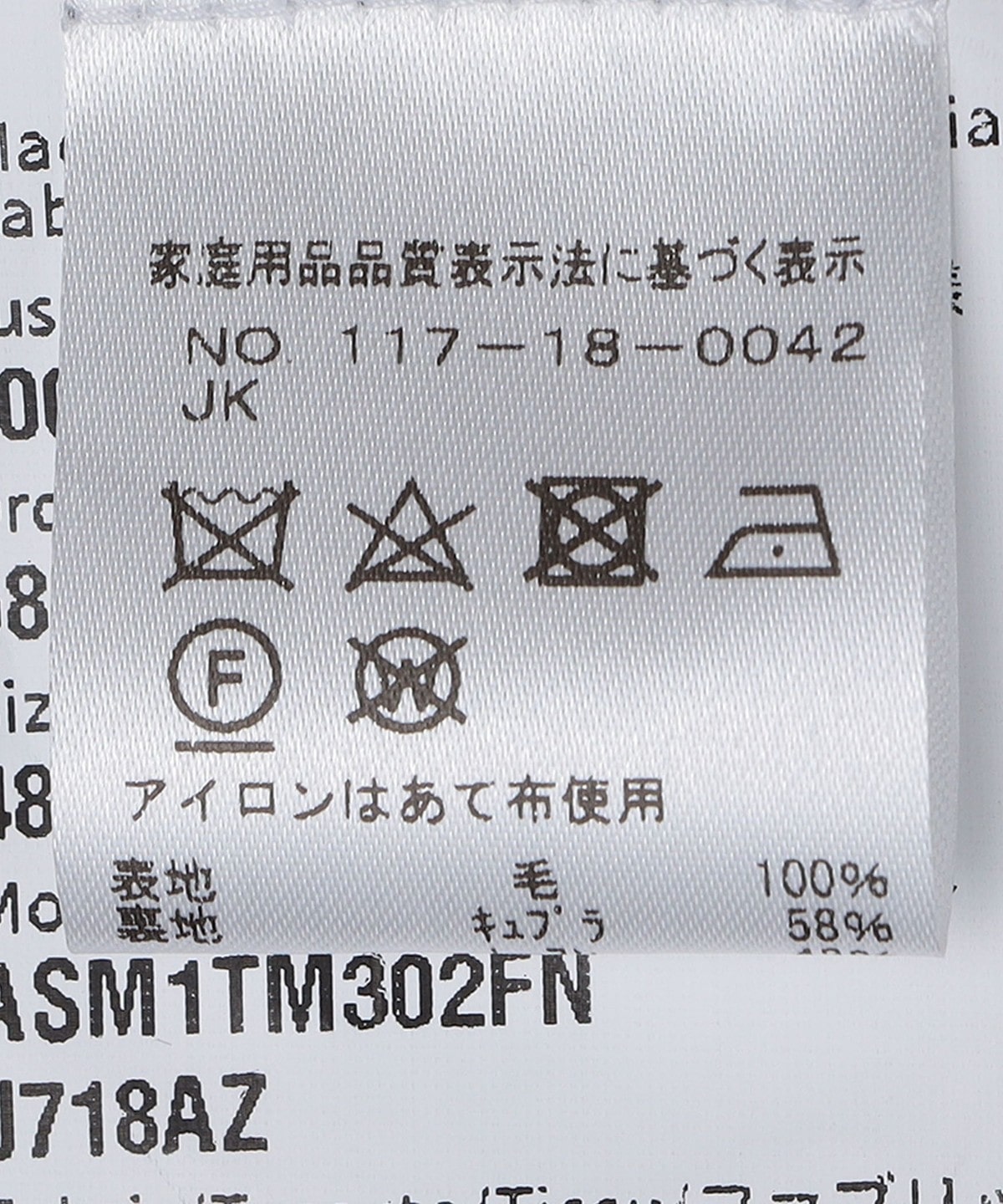 素材:ジャケット表地: 毛100%, 裏地: キュプラ58%, レーヨン42%, パンツ表地: 毛100%, 膝裏地: レーヨン100%