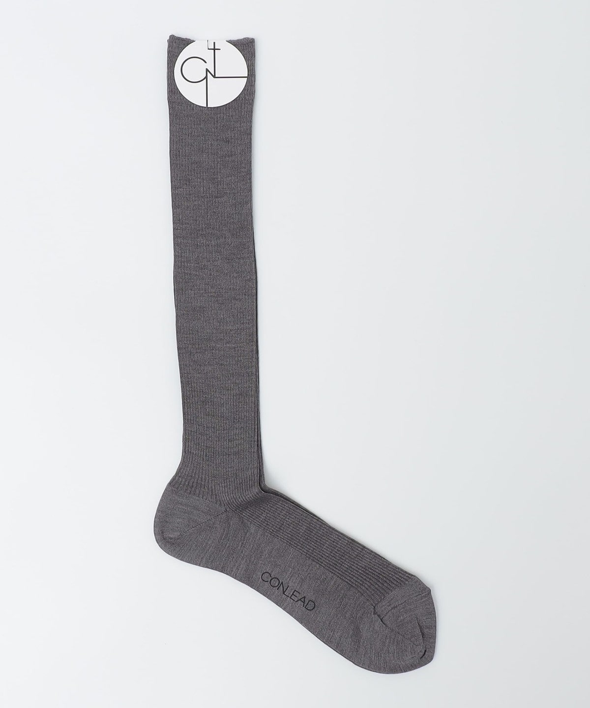 2. CONLEAD: シルク/ナイロン リブ ロングホーズ チャコールグレー
