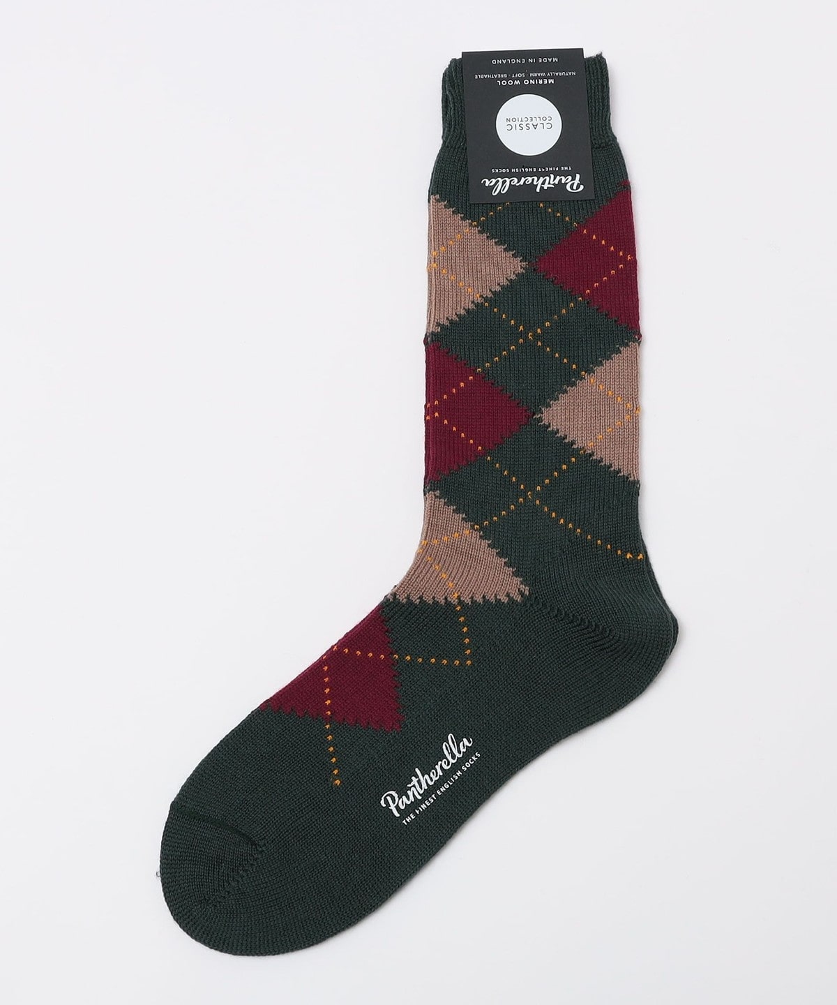 英国PANTHERELLAの提案する今シーズンのアーガイル柄のウールソックス。