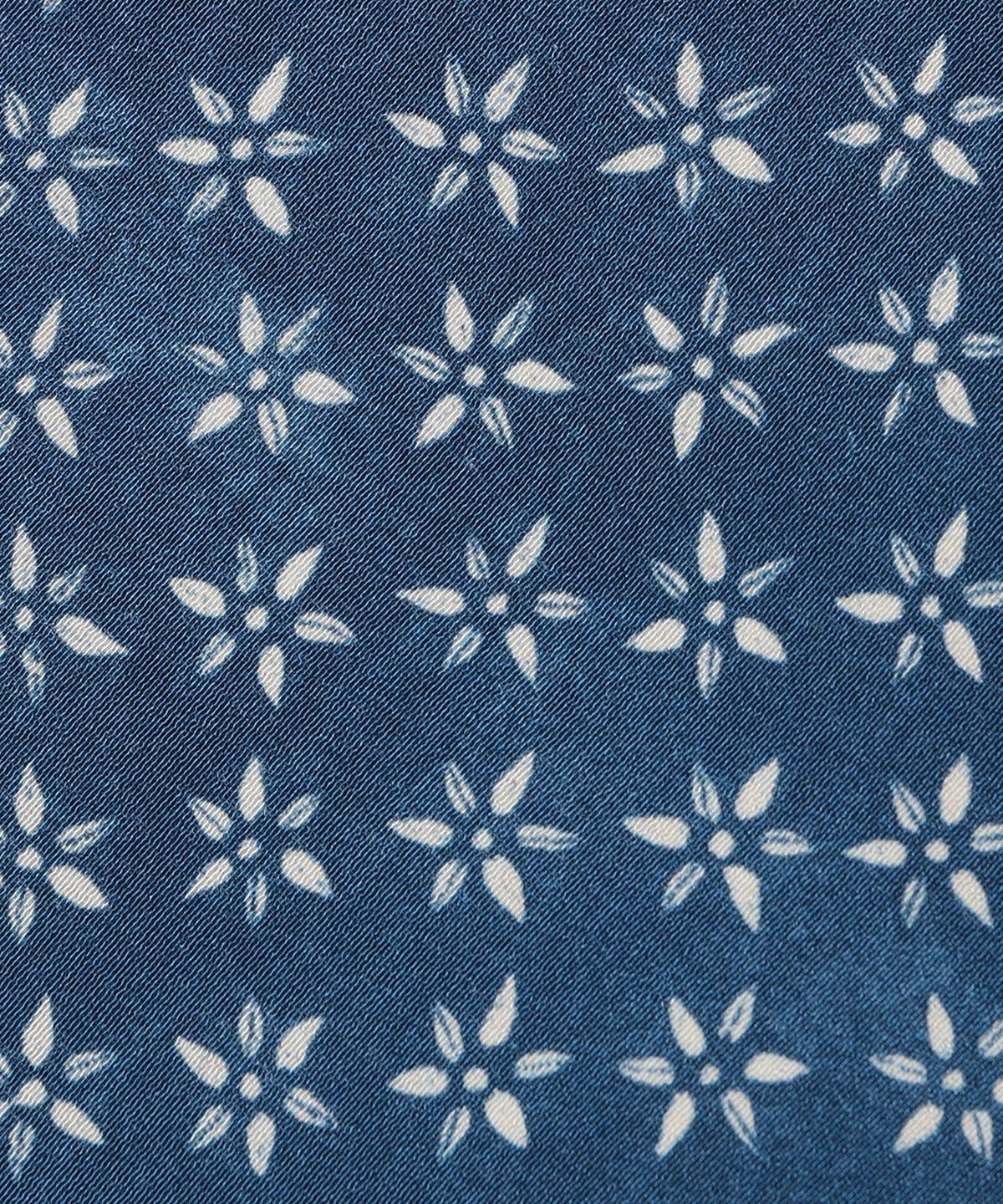 ベーシックなコモン柄やドット柄とは違った表情を持つインディアンバティックのフラワー柄はスタイリングを華やかに彩ってくれます。