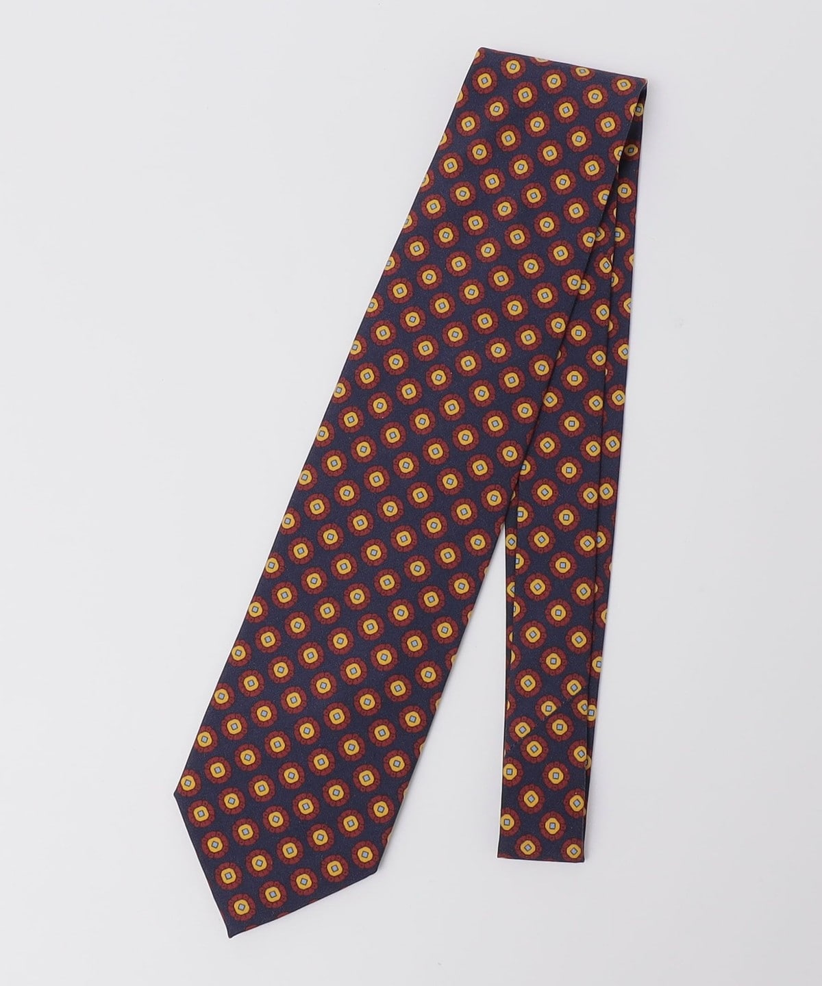 プリントのコモン柄が全体に配置されたクラシックな印象のネクタイ。