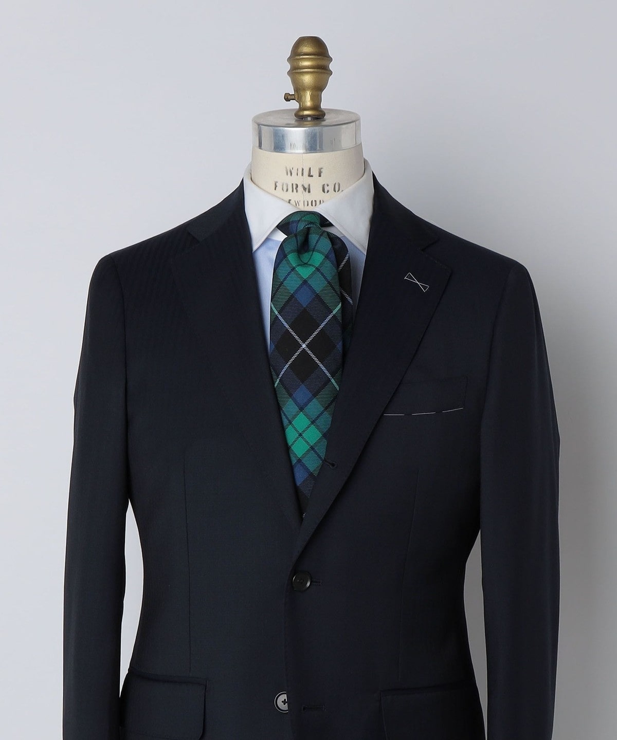 タータンチェックはトラッド色が強く出やすいですが、こちらのネクタイはベーシックなスーツスタイルとの相性も良い1本。