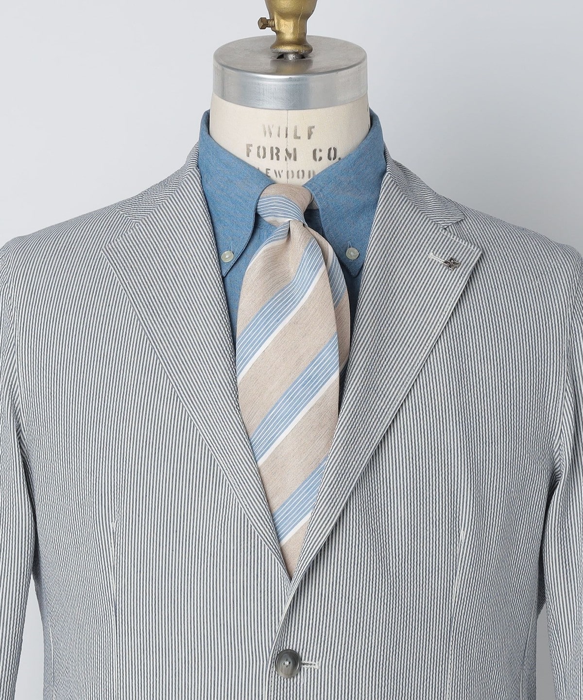 春夏の軽やかなスーツ/ジャケットスタイルにおすすめのネクタイです。