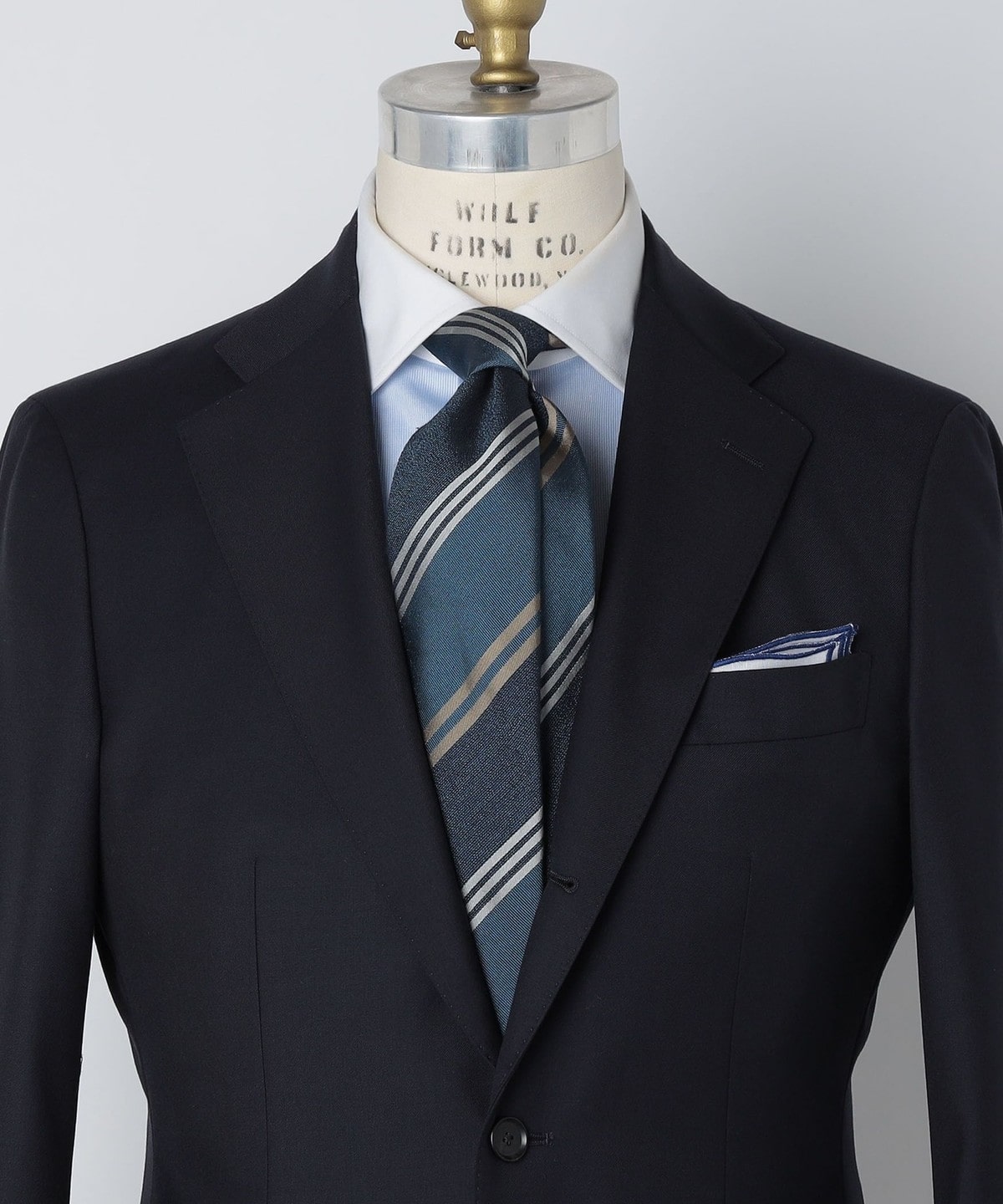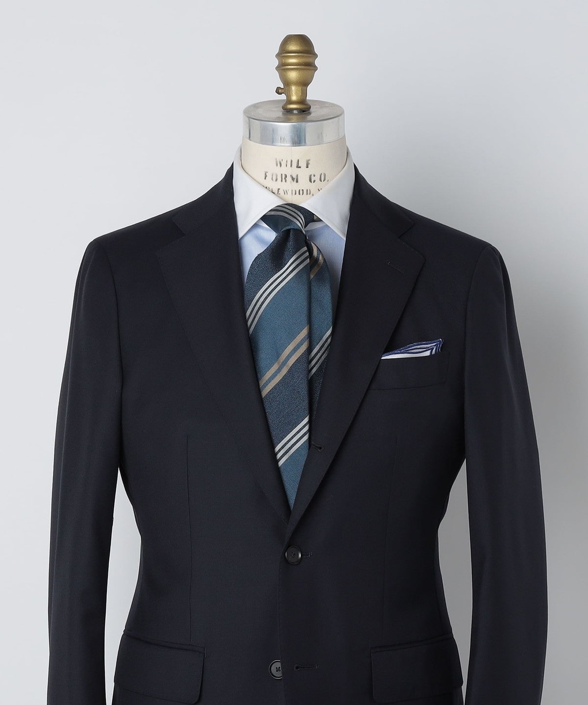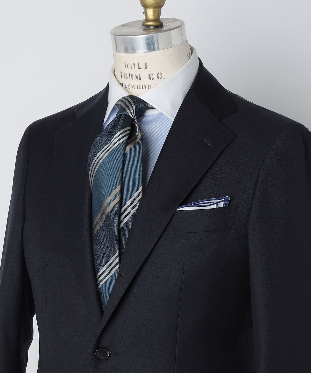 3. SHIPS: ヴィンテージ アーカイブ シルク メランジ ワイド ストライプ ネクタイ ネイビー