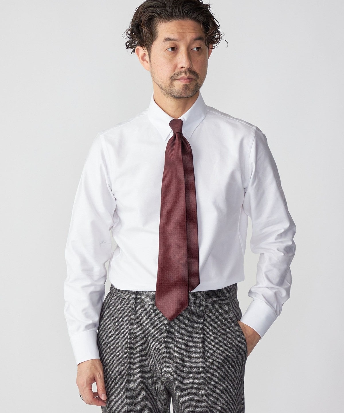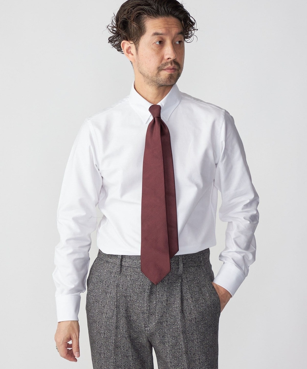 硬派な印象を与えるネクタイですので、梳毛のウール素材のスーツや正統派ドレスシャツと合わせていただくと、よりネクタイの上品な雰囲気を活かすことができます。