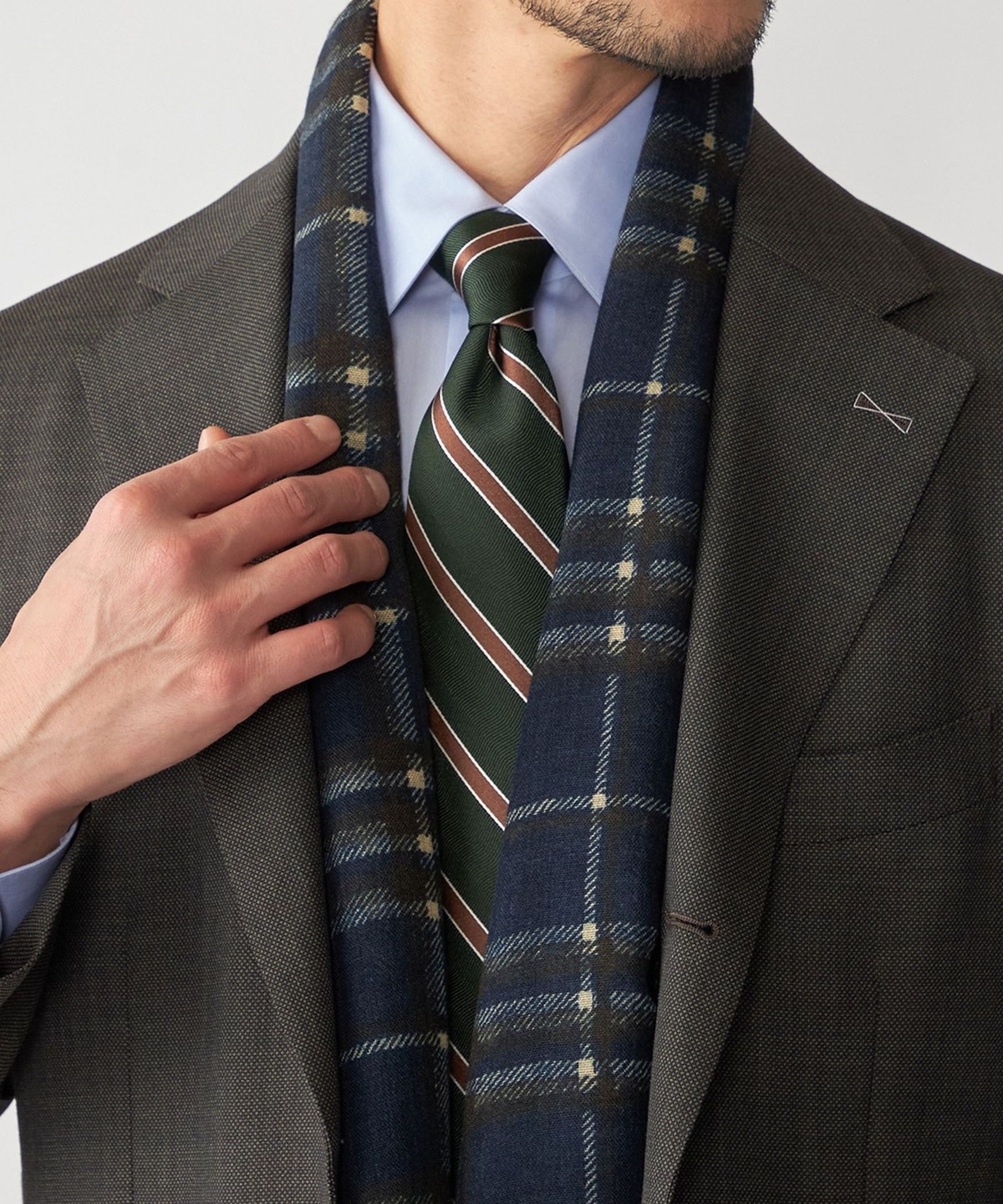 ジャケットスタイルからカジュアルスタイルまで、スタイリングにアクセントを与えたいときにおすすめの一枚。