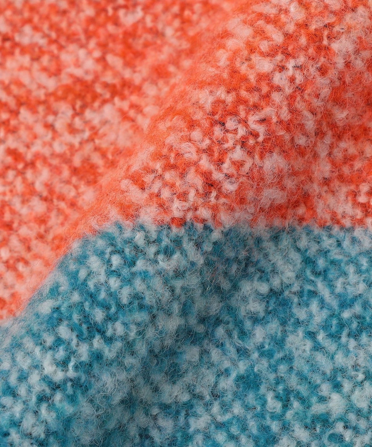 珍しい配色のチェック柄が目を惹くデザインになっており、ブークレー素材でふんわりとした質感で首元を華やかに演出してくれるアイテム。