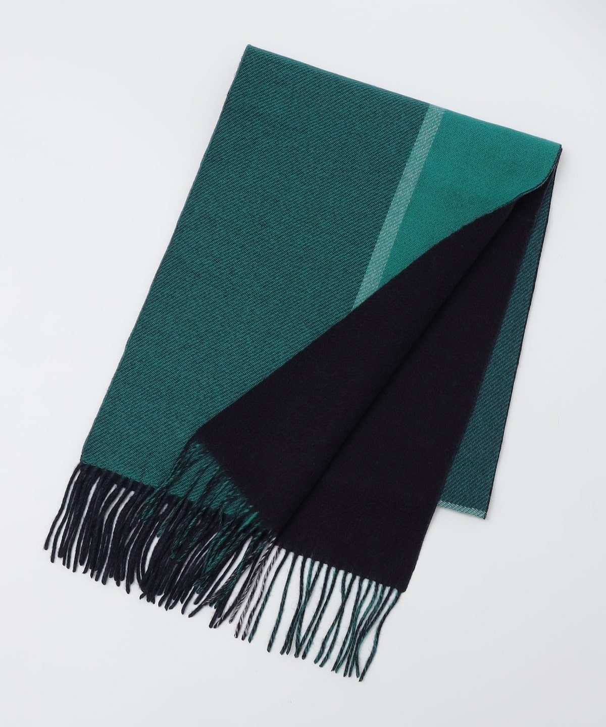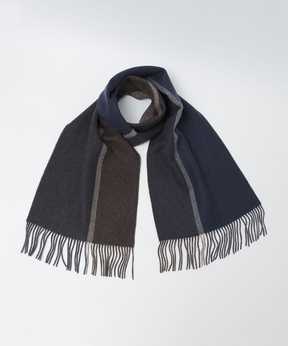 SHIPS: カシミヤ ダブルフェイス パネル マフラー