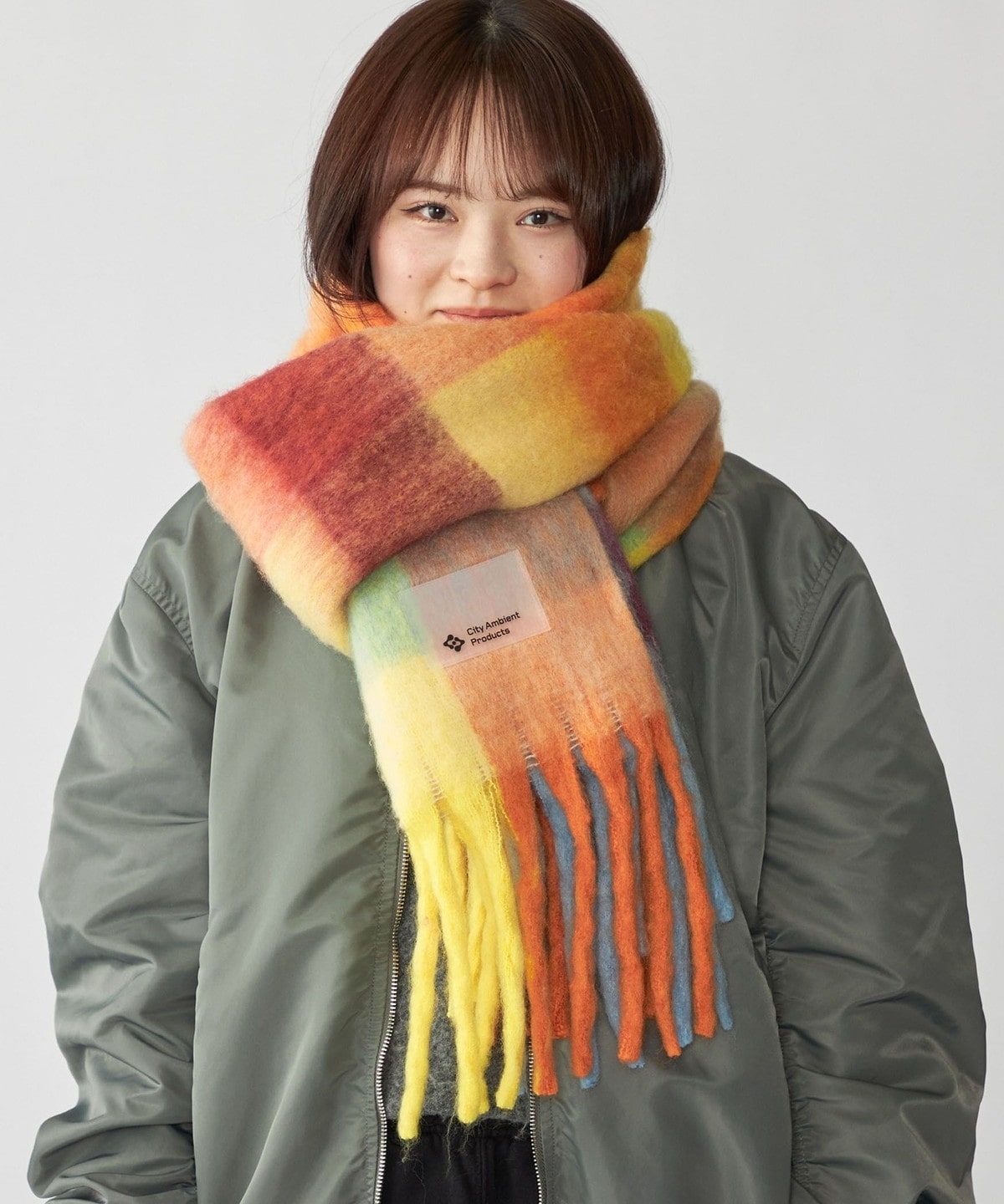 City Ambient Products: シャギー チェック ボリューム マフラー